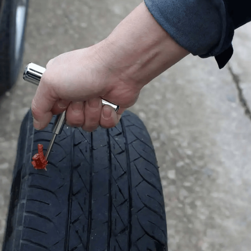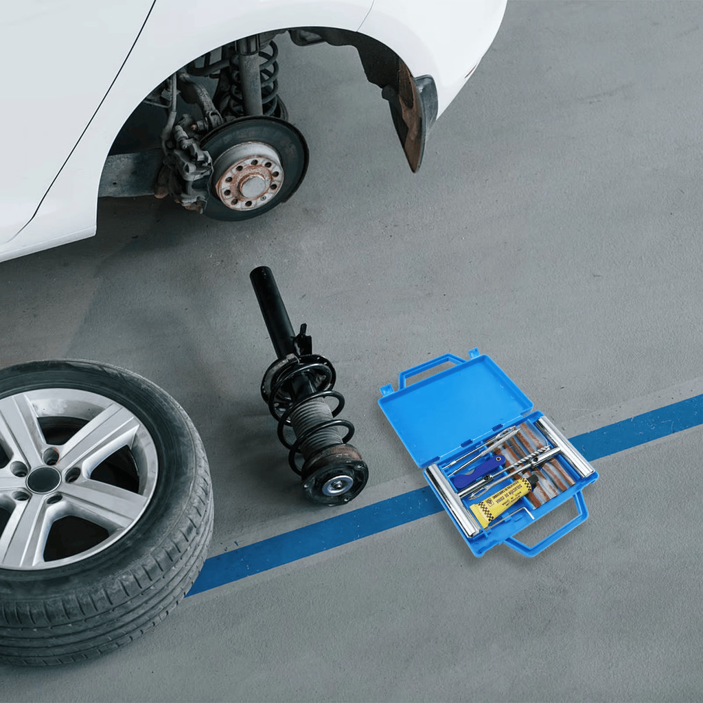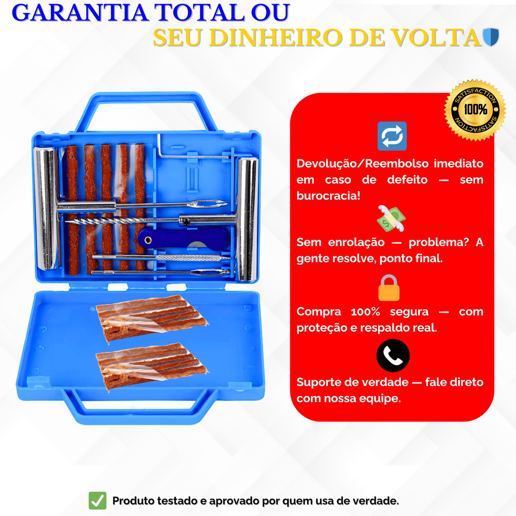 Kit Reparo Pneu Sem Câmara + Maleta 15 Remendos Moto E Carro Remendo Metal Macarrão Motos Refis