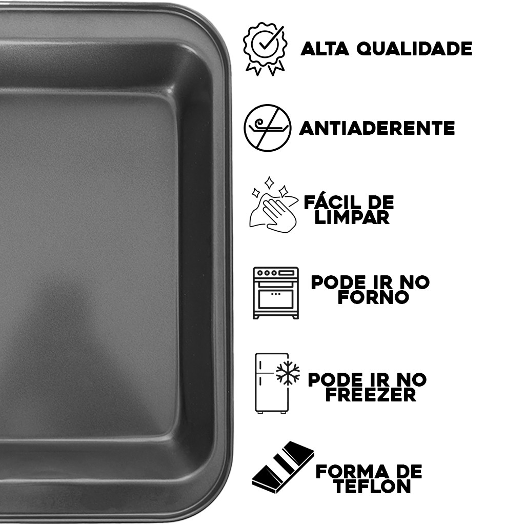Forma Assadeira Pão Caseiro Antiaderente Teflon Lasanha Retangular Bolo Jogo Conjunto Cozinha casa