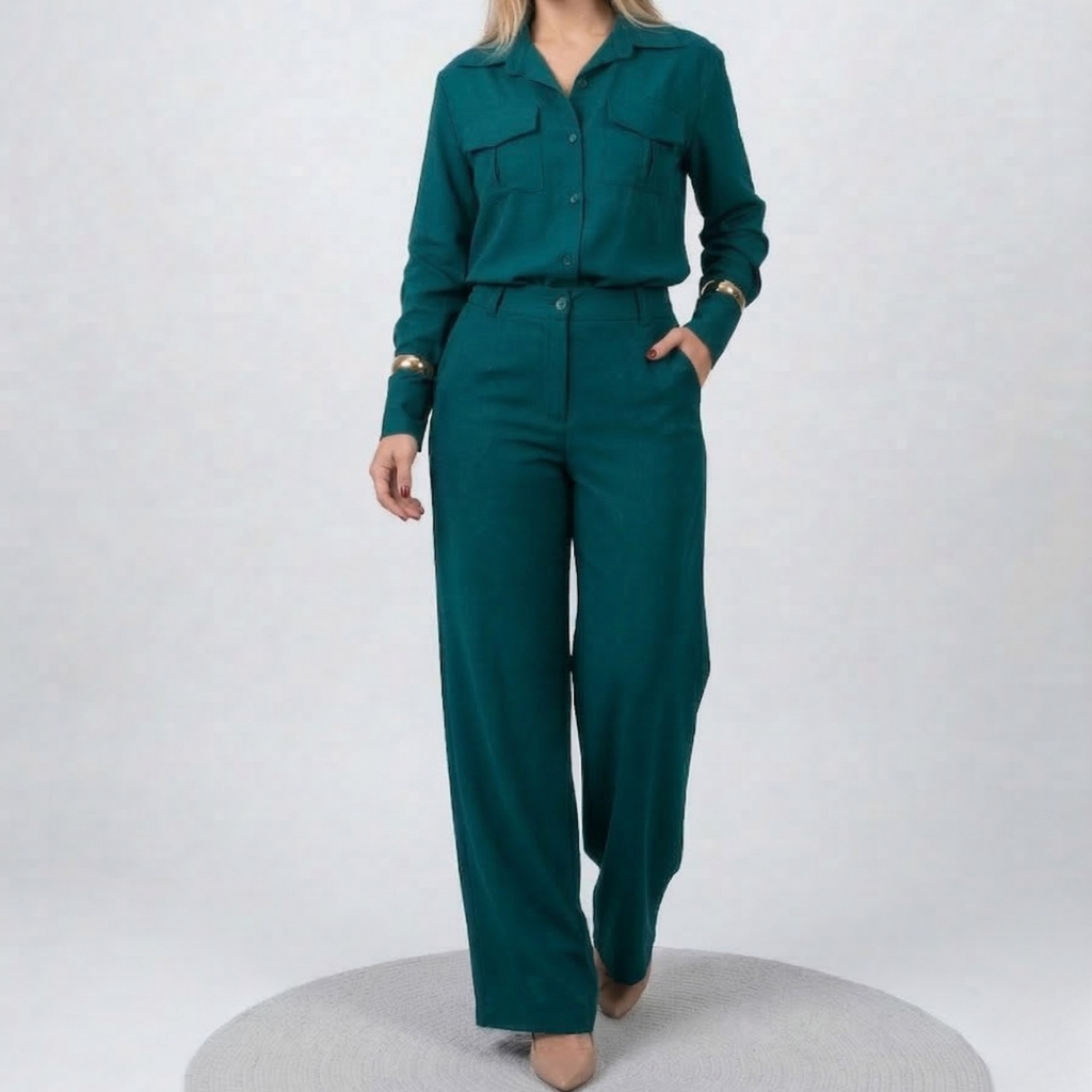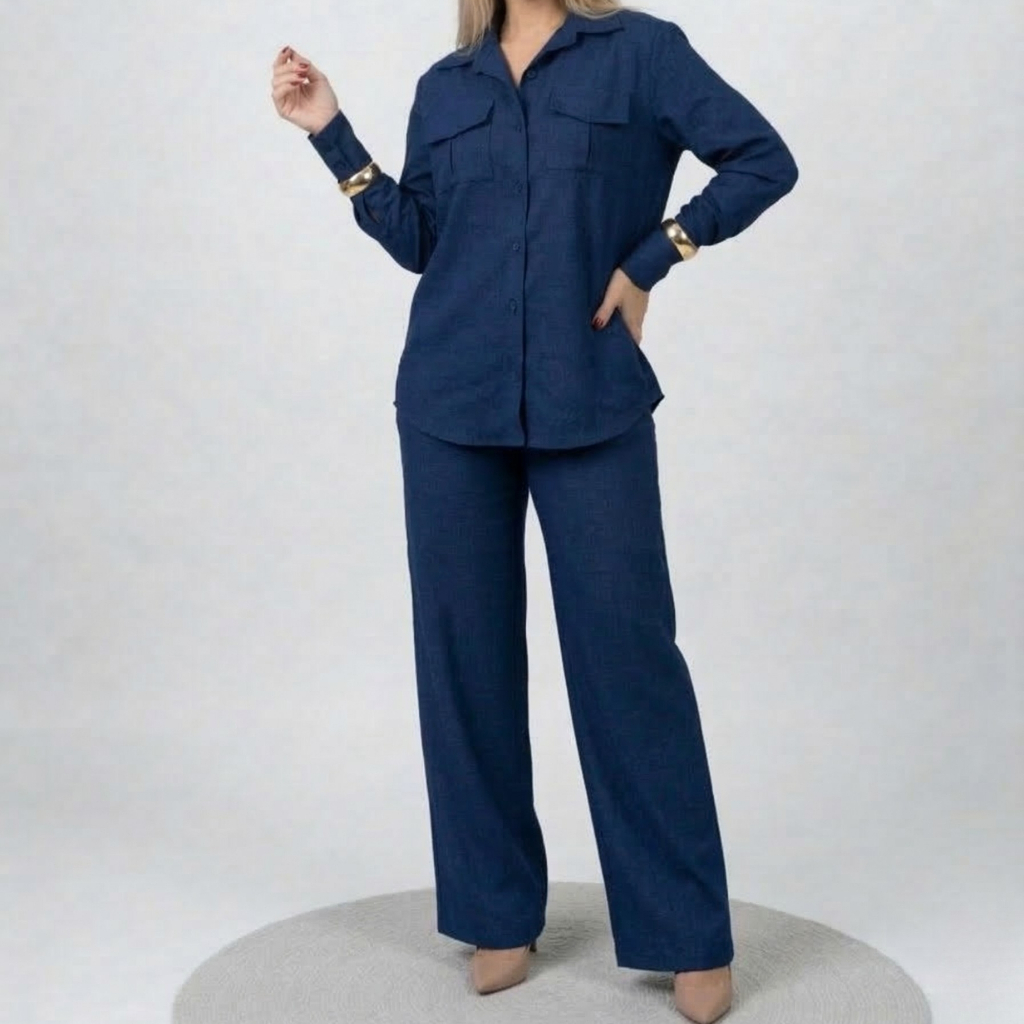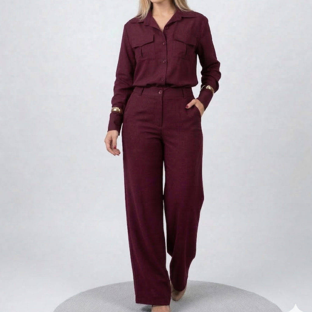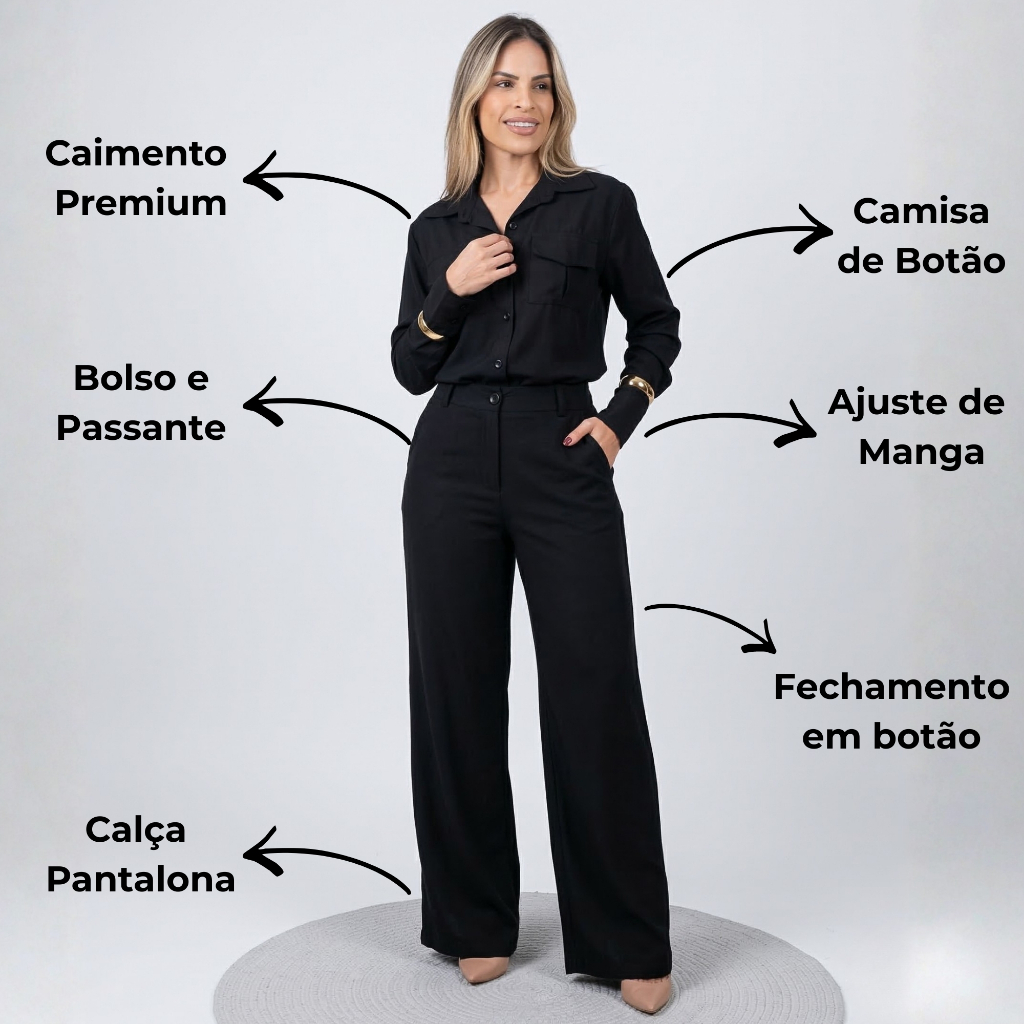 Kit Conjunto Alfaiataria Feminino Calça Pantalona E Camisa Manga Longa Social Alfaiataria Luxo Blogueira Modesta