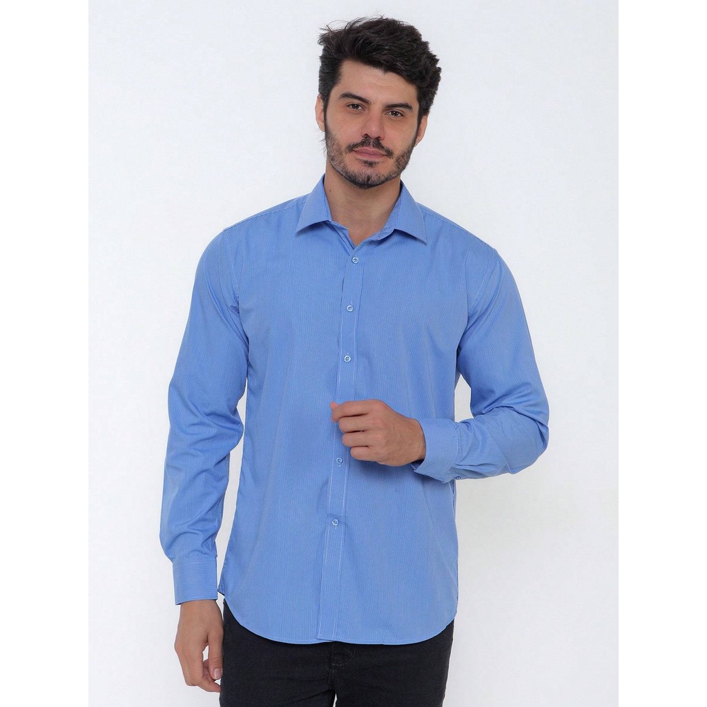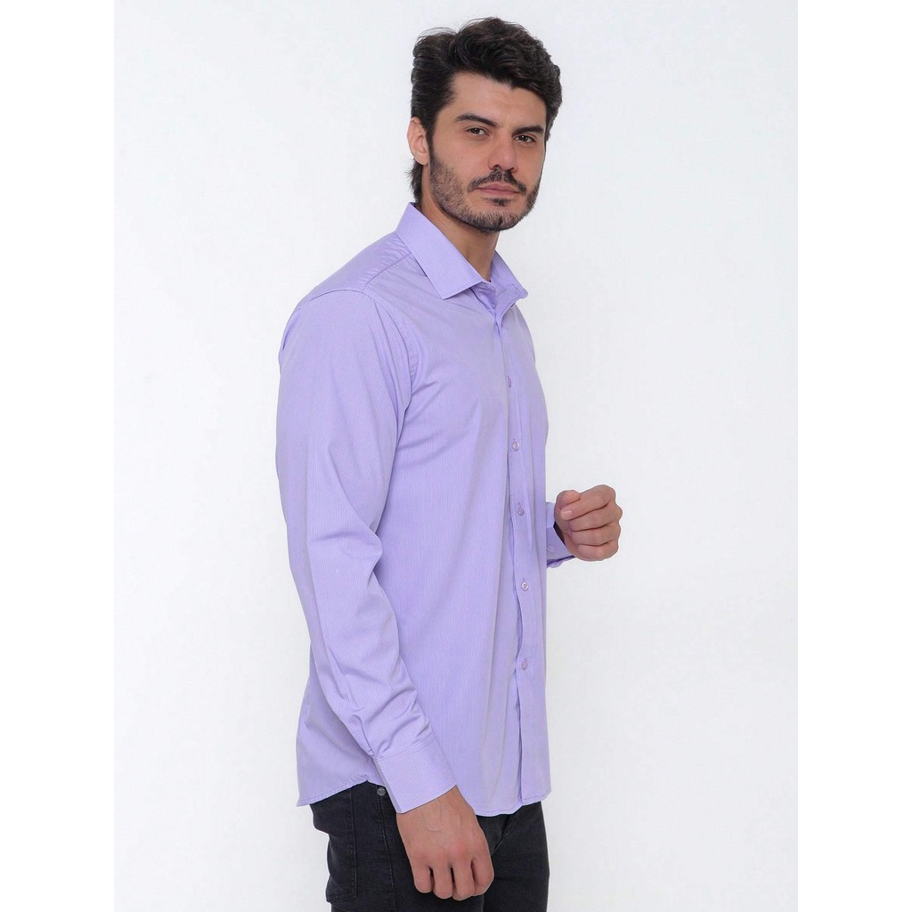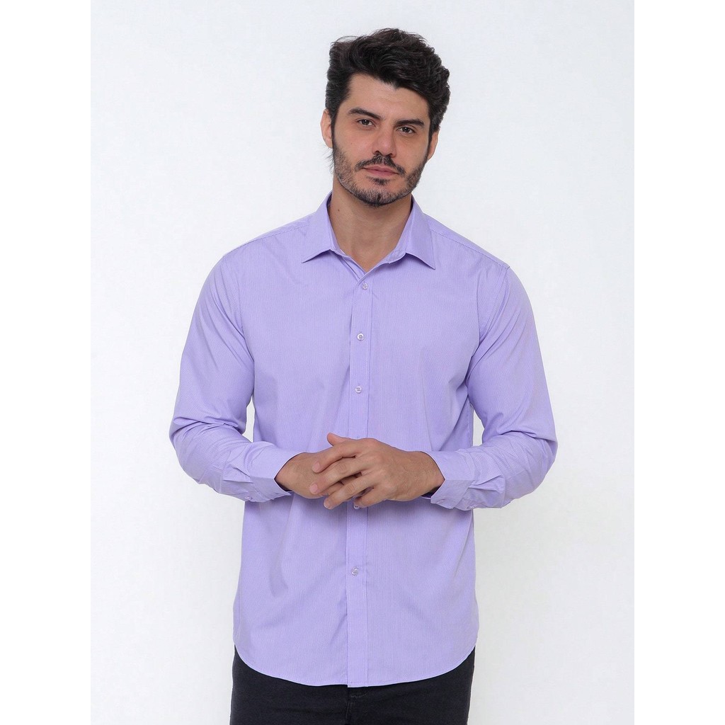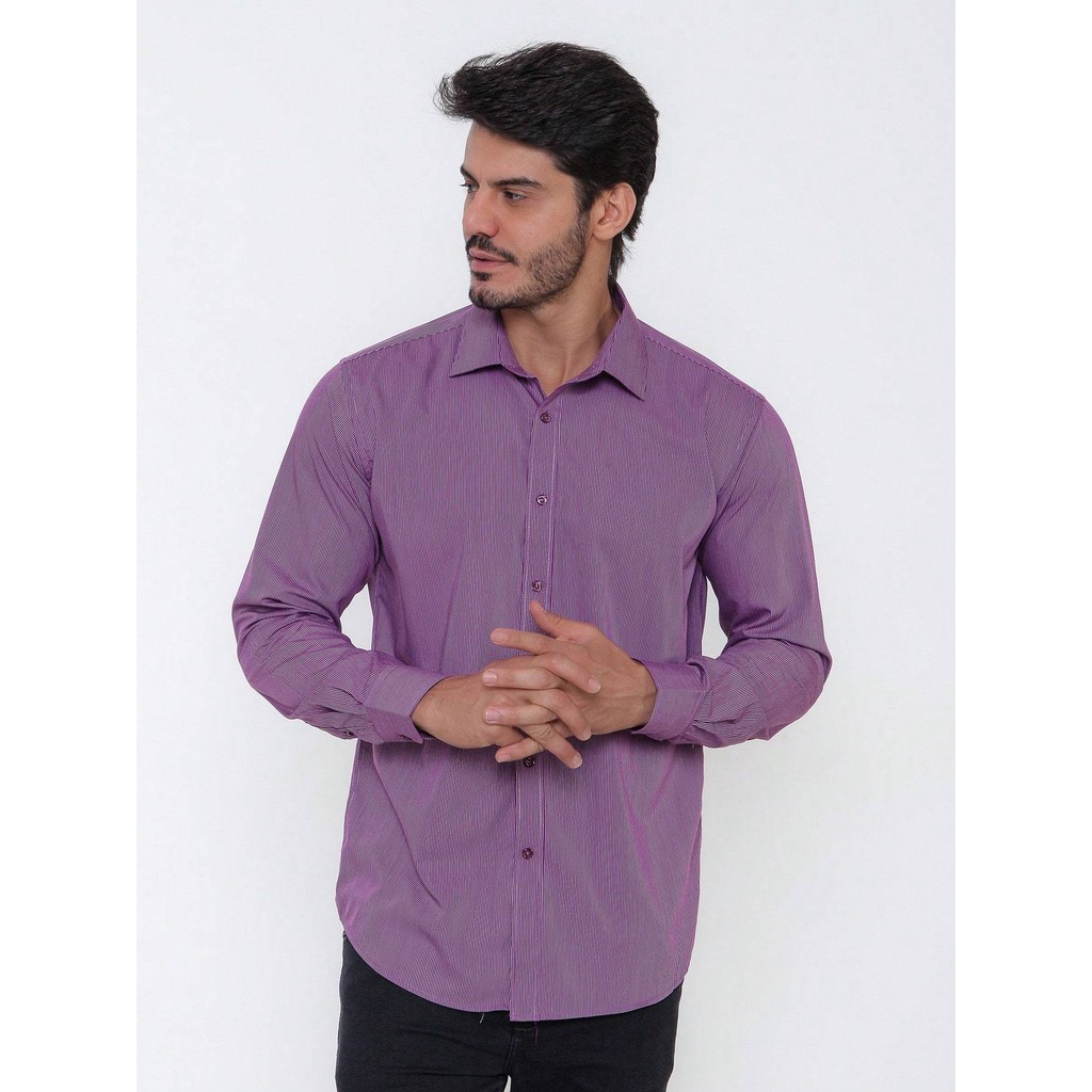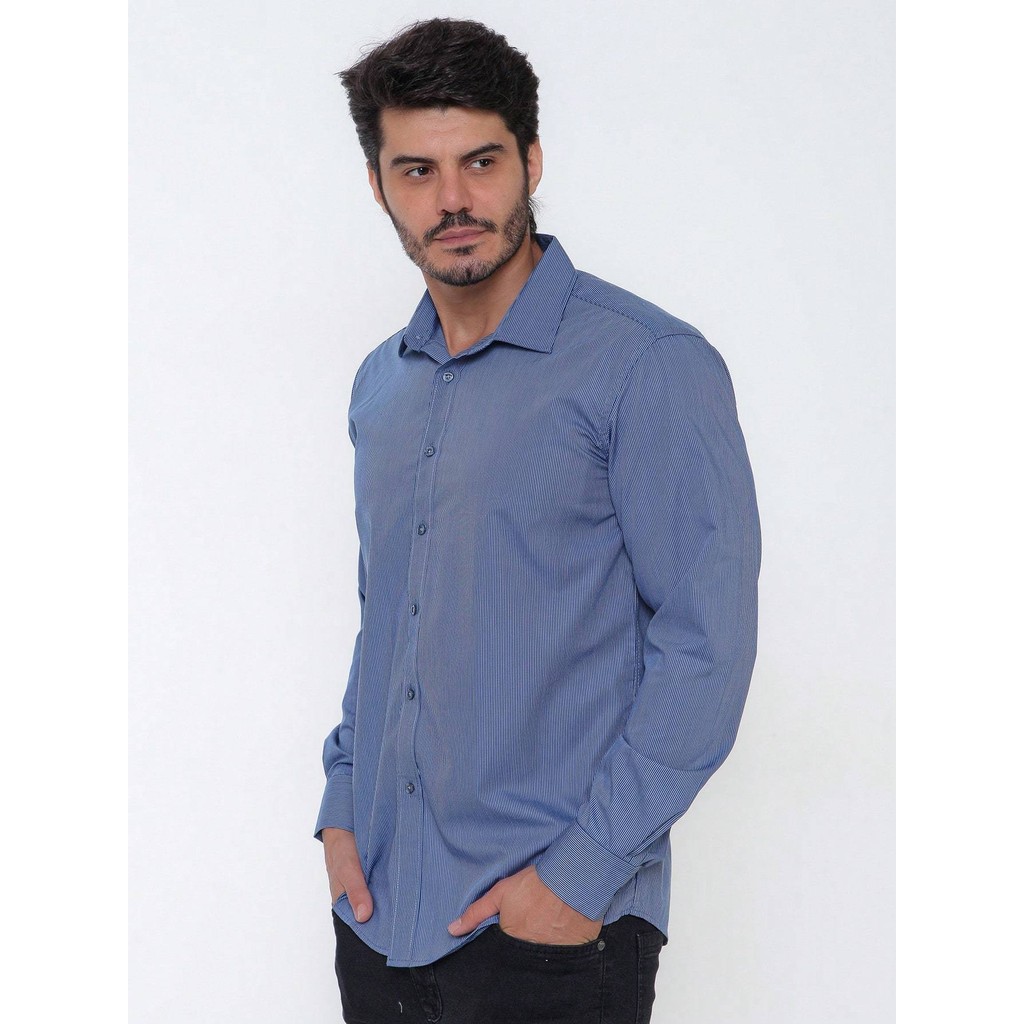 Camisa Social Masculina Manga Longa Listrada Tecido Algodão Egípcio Passa Fácil