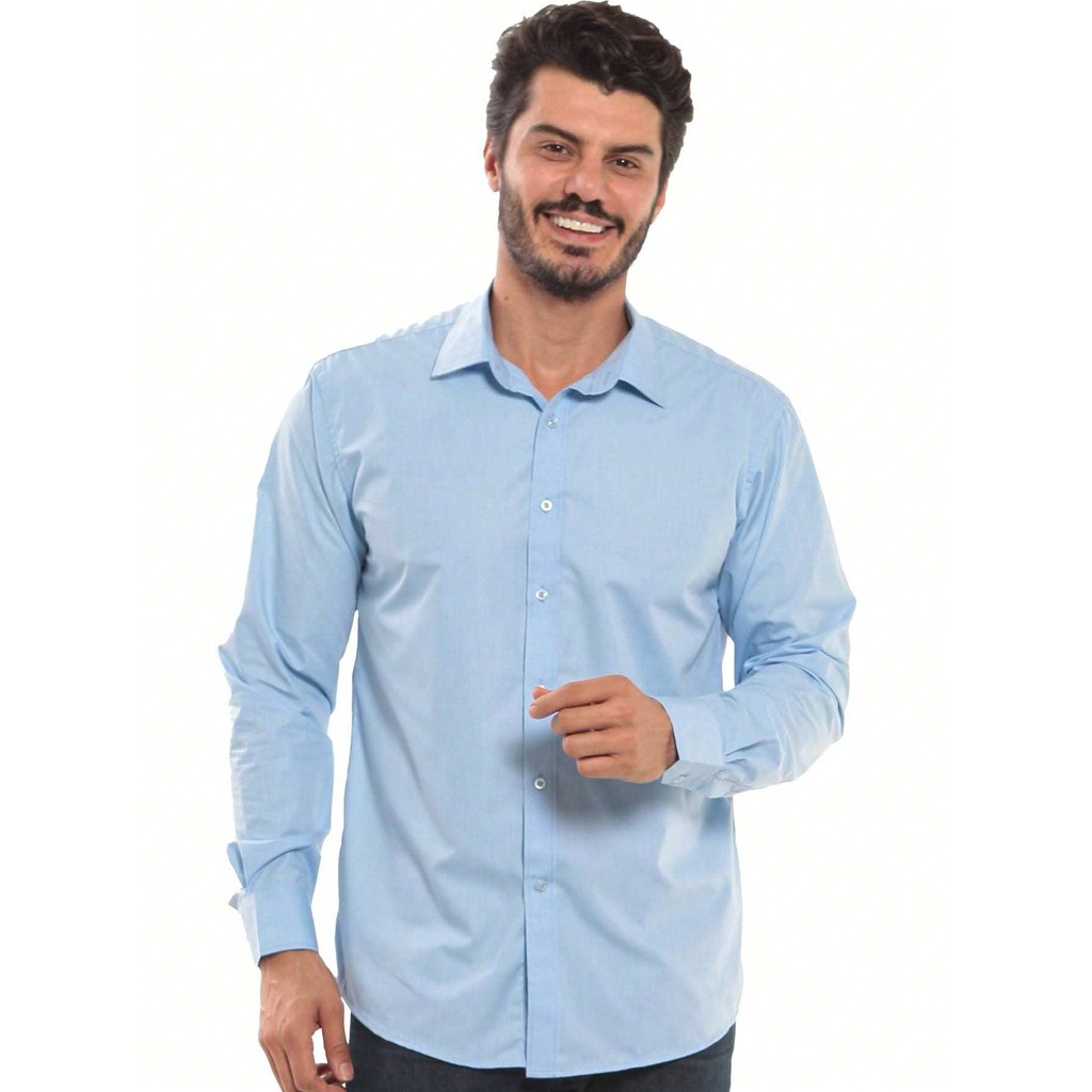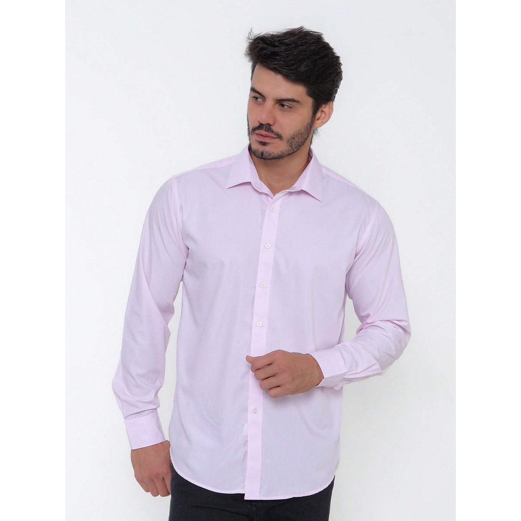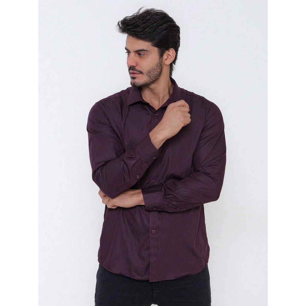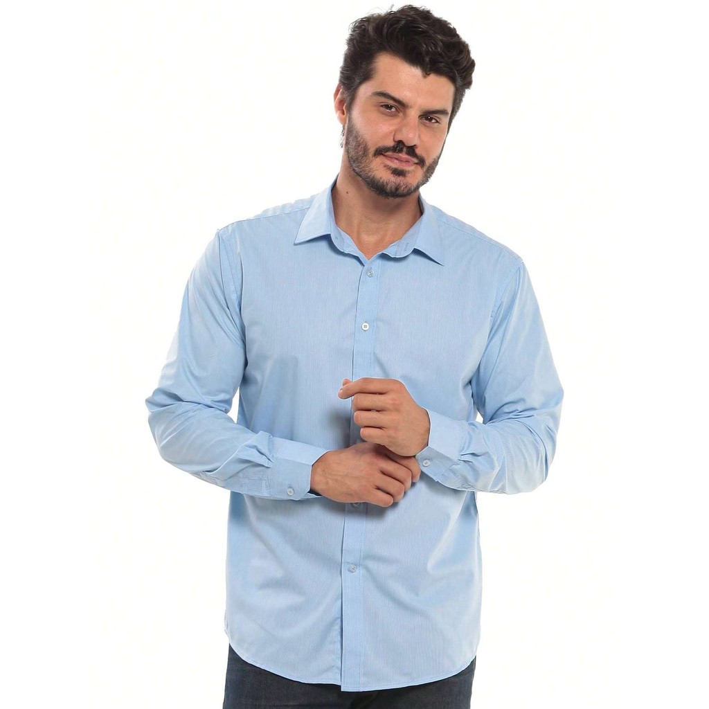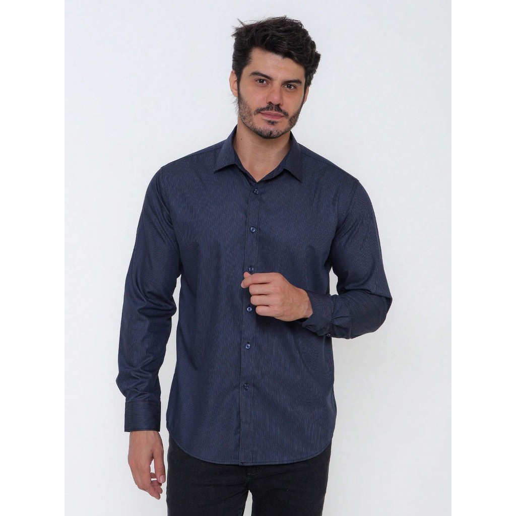 Camisa Social Masculina Manga Longa Listrada Tecido Algodão Egípcio Passa Fácil
