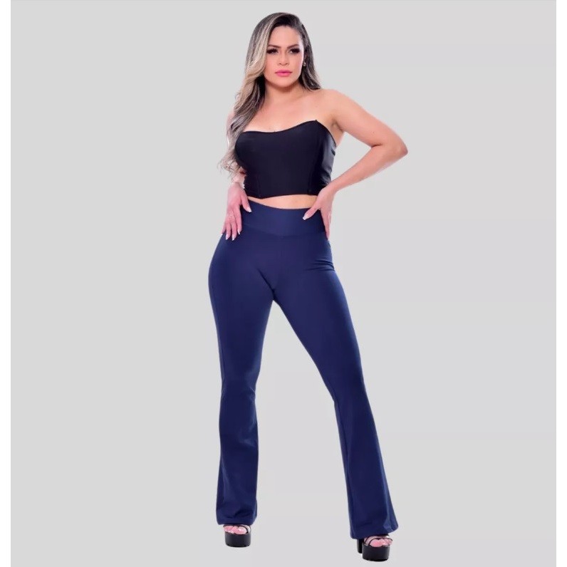 Plus Size Calça Flare Bailarina Suplex Cintura Alta 48 A 66