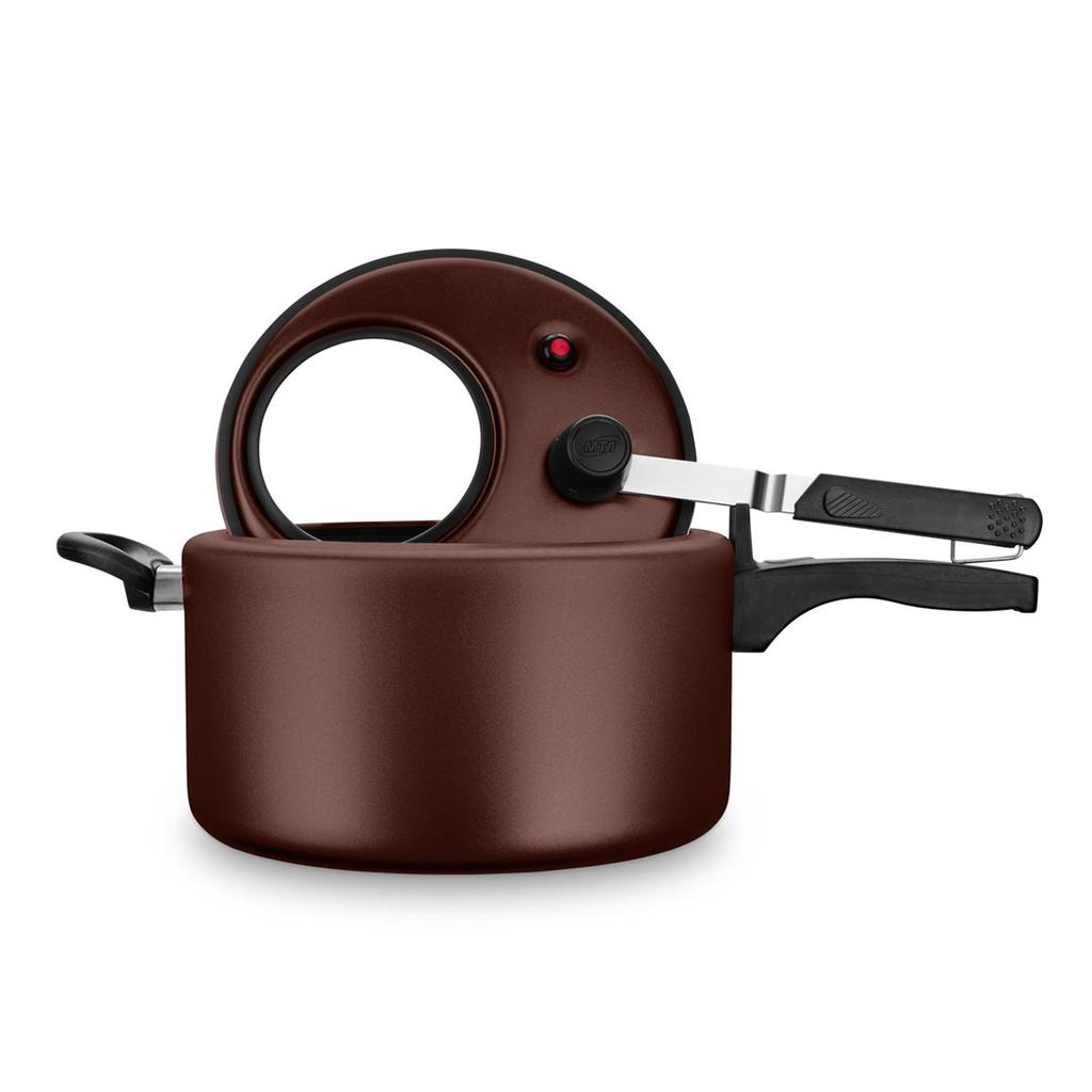 Panela de Pressão MTA Antiaderente Com Visor 6L Fechamento Superior Chocolate - 9190