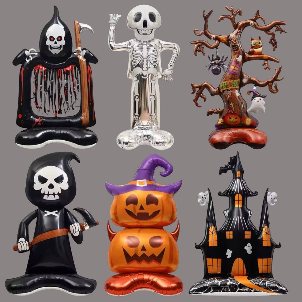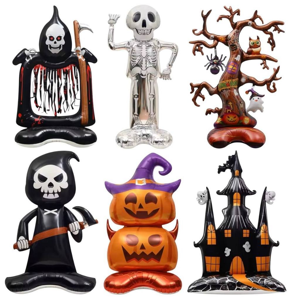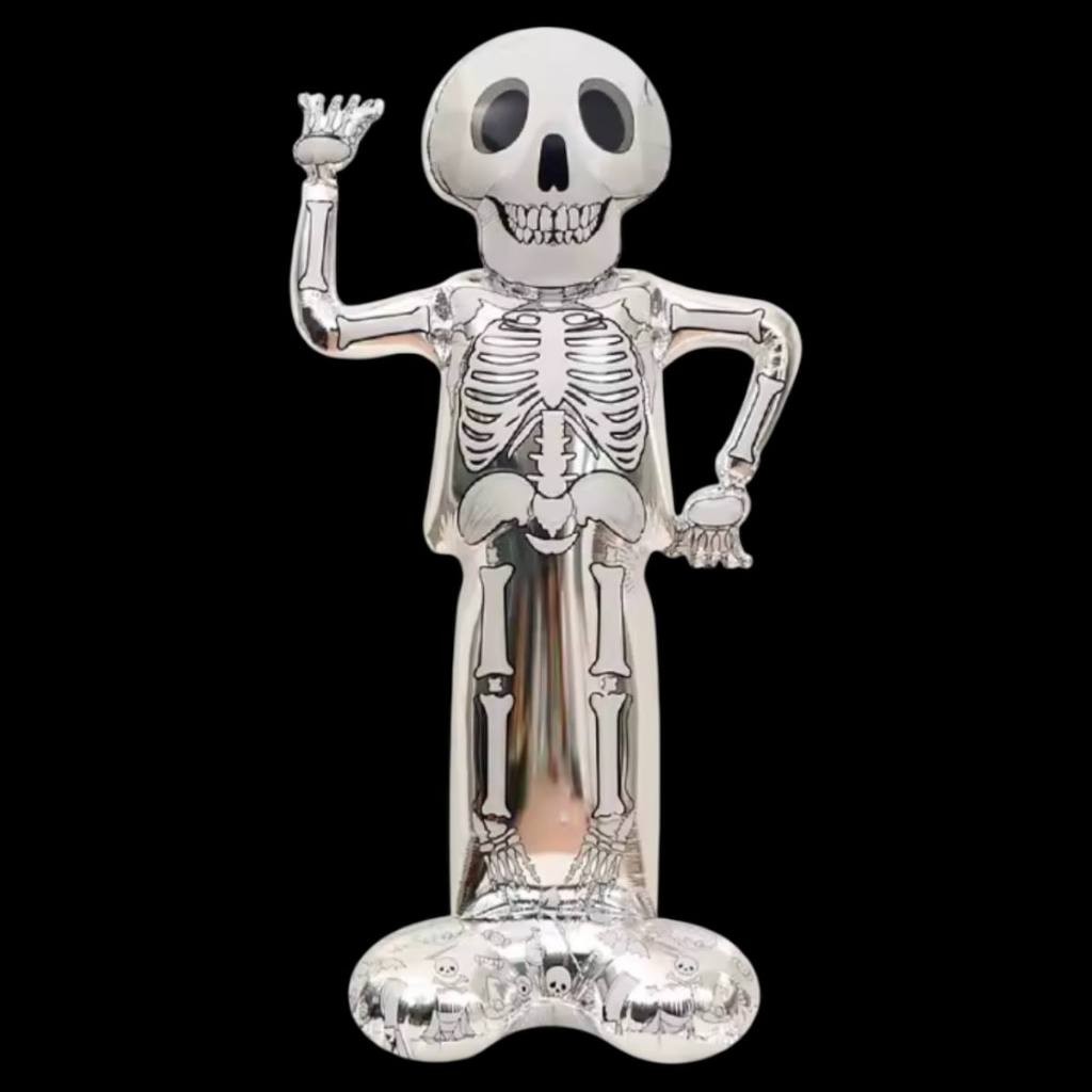 Balão Metalizado Halloween Gigante c/ Base 150cm Esqueleto Morte Caveira Festa Decoração