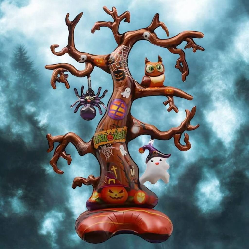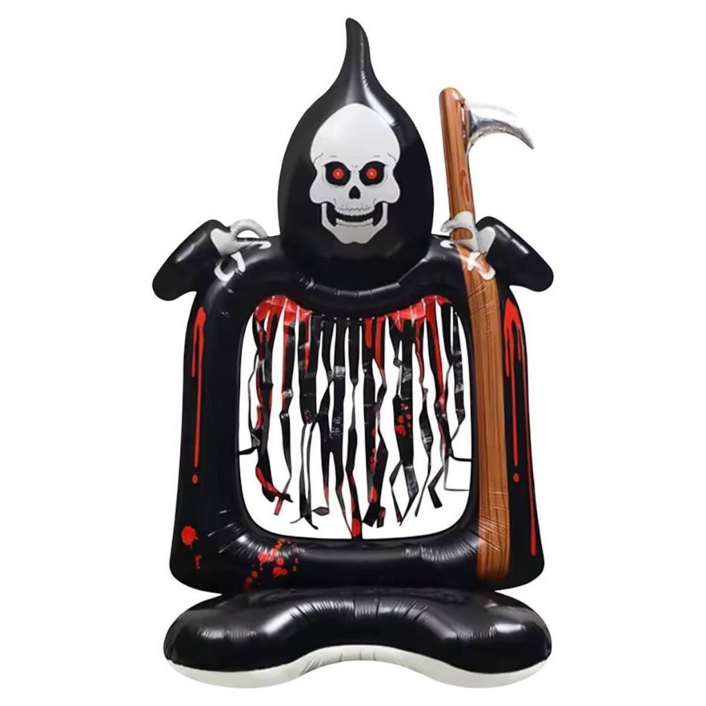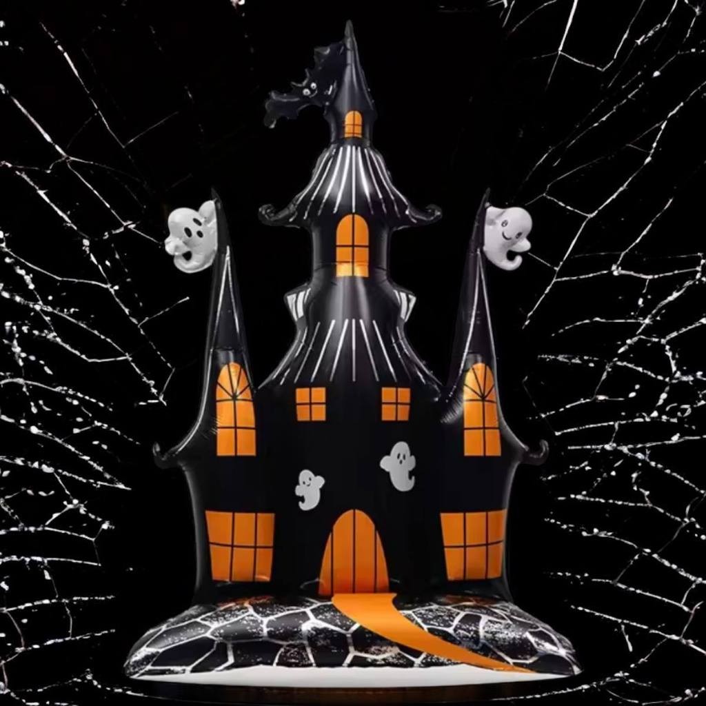 Balão Metalizado Halloween Gigante c/ Base 150cm Esqueleto Morte Caveira Festa Decoração