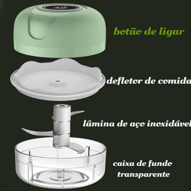 KIT 2 Mini Processador Elétrico Moedor Carne Vegetais Alho Fruta Amendoim Recarregável USB 250ml