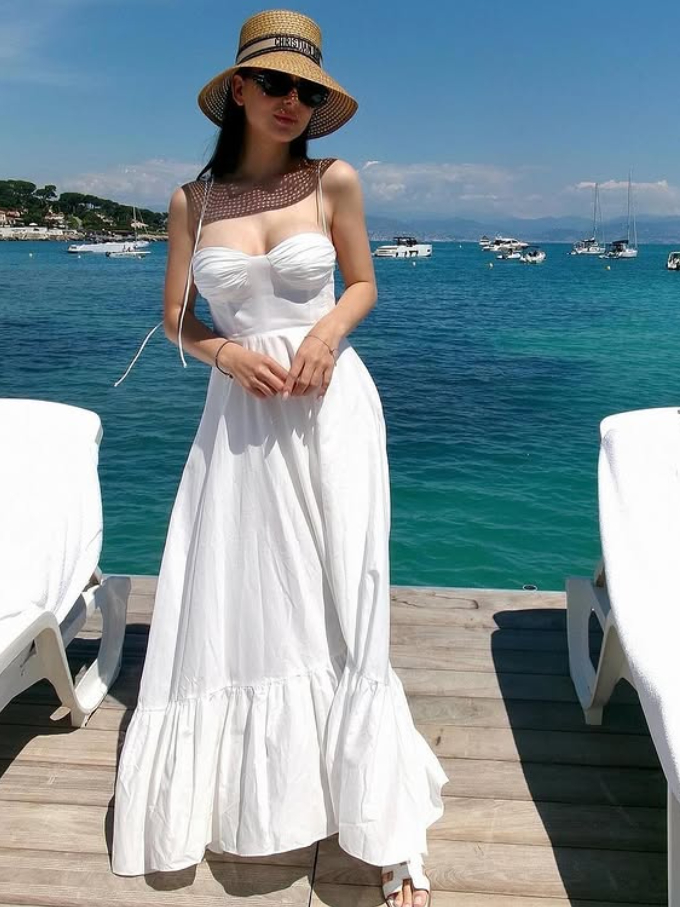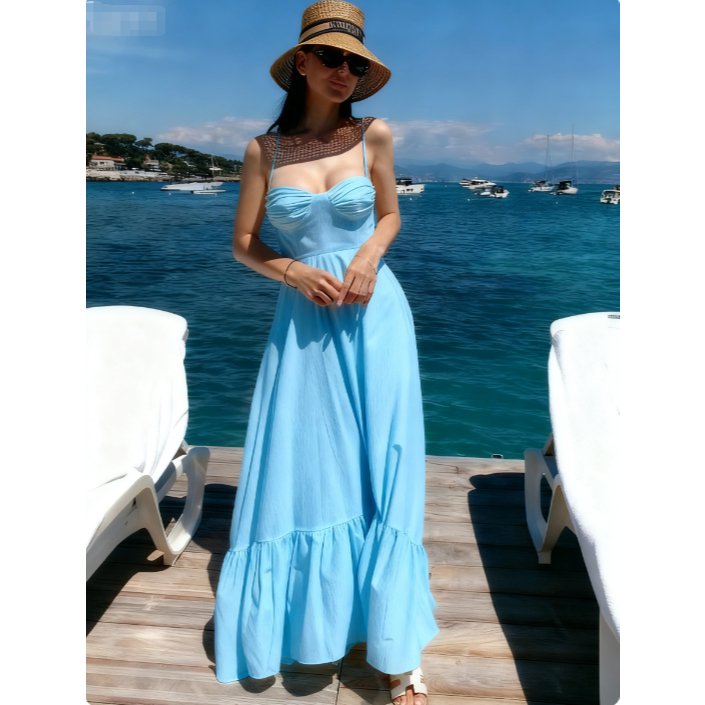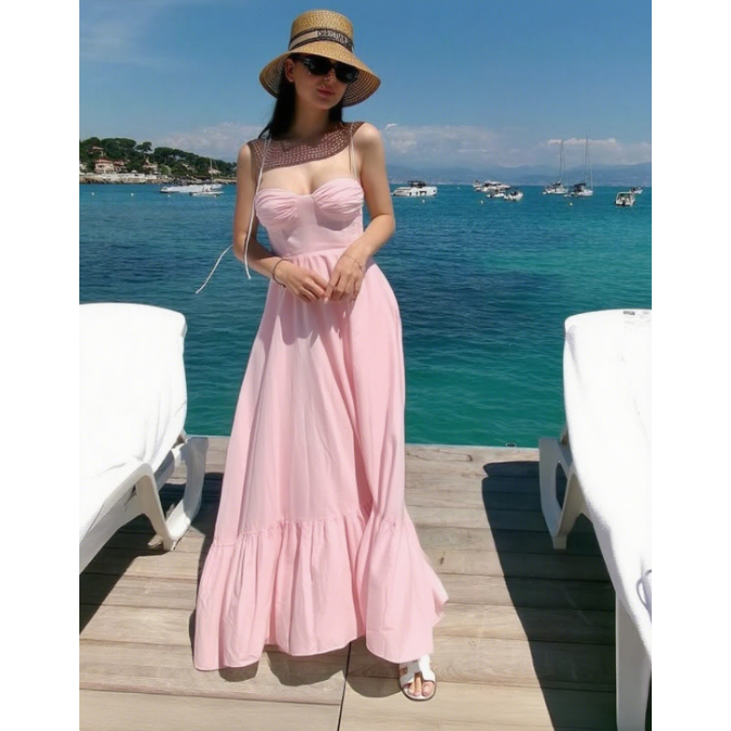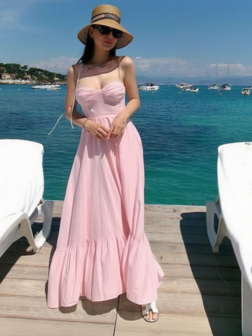 Vestido Longo com Alça Canelada, Sem Costas, Franzido e Justo ao Corpo