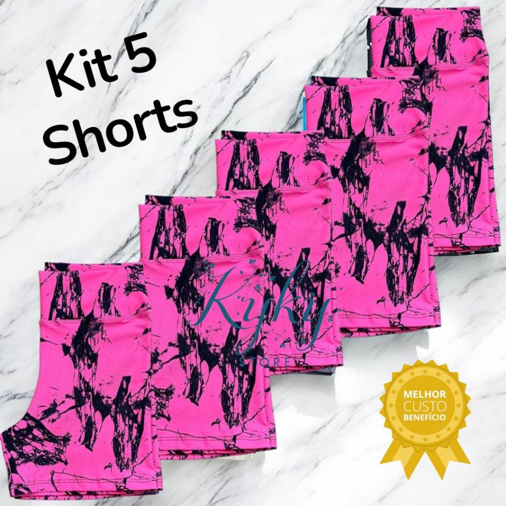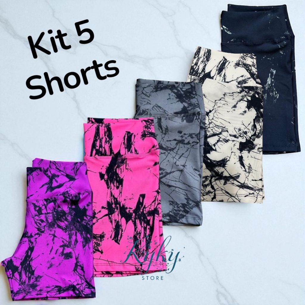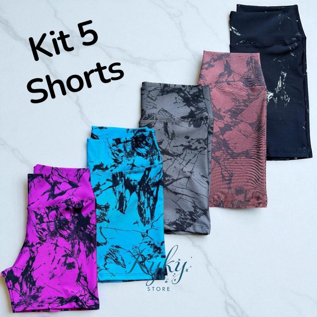 Kit 5 Shorts Feminino Fitness Tie Dye Marmorizado Roupa Academia Cintura Alta Feminino Zero Transparencia