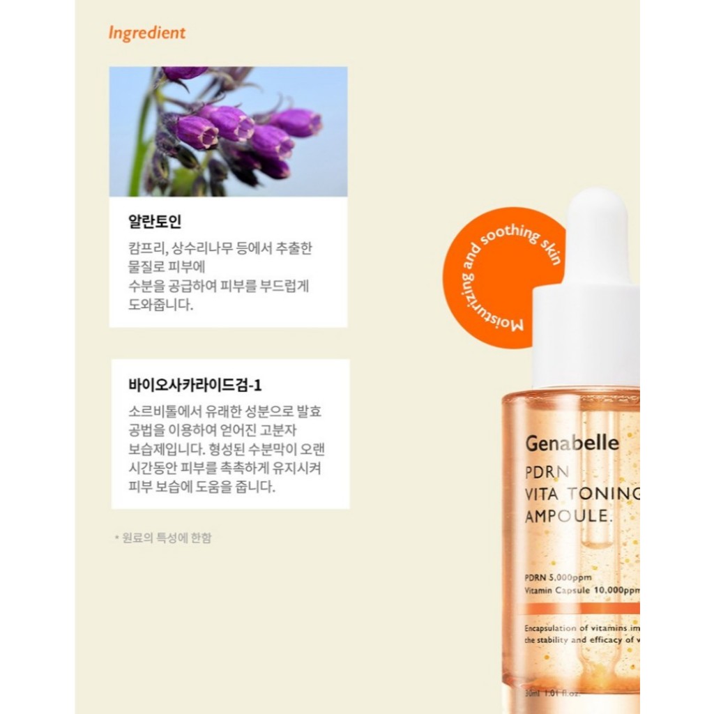 [Genabelle] Ampola Tonificante PDRN Vita 30ml Soro Cápsula Vitamina/Calmante + Elasticidade