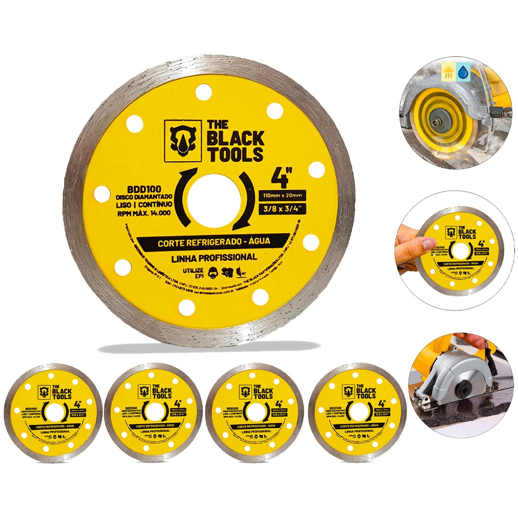Kit 05 Discos De Corte Vidro Porcelanato E Vidro 110mm The Black Tools