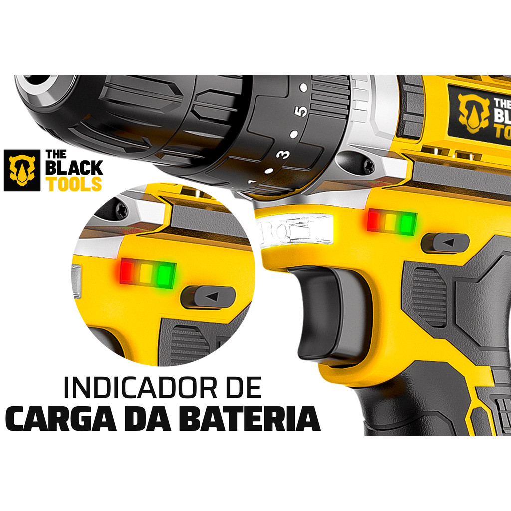 Parafusadeira E Furadeira De Impacto Tb-21pw 21v 3/8 The Black Tools Com Jogo De Soquetes 40 Peças