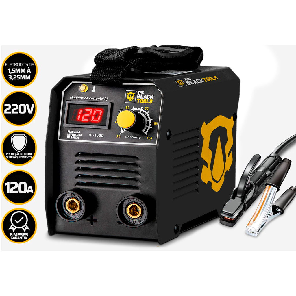 Máquina Solda Inversora 220V Tig Eletrodo 120a The Black Tools + Máscara Escurecimento Automático