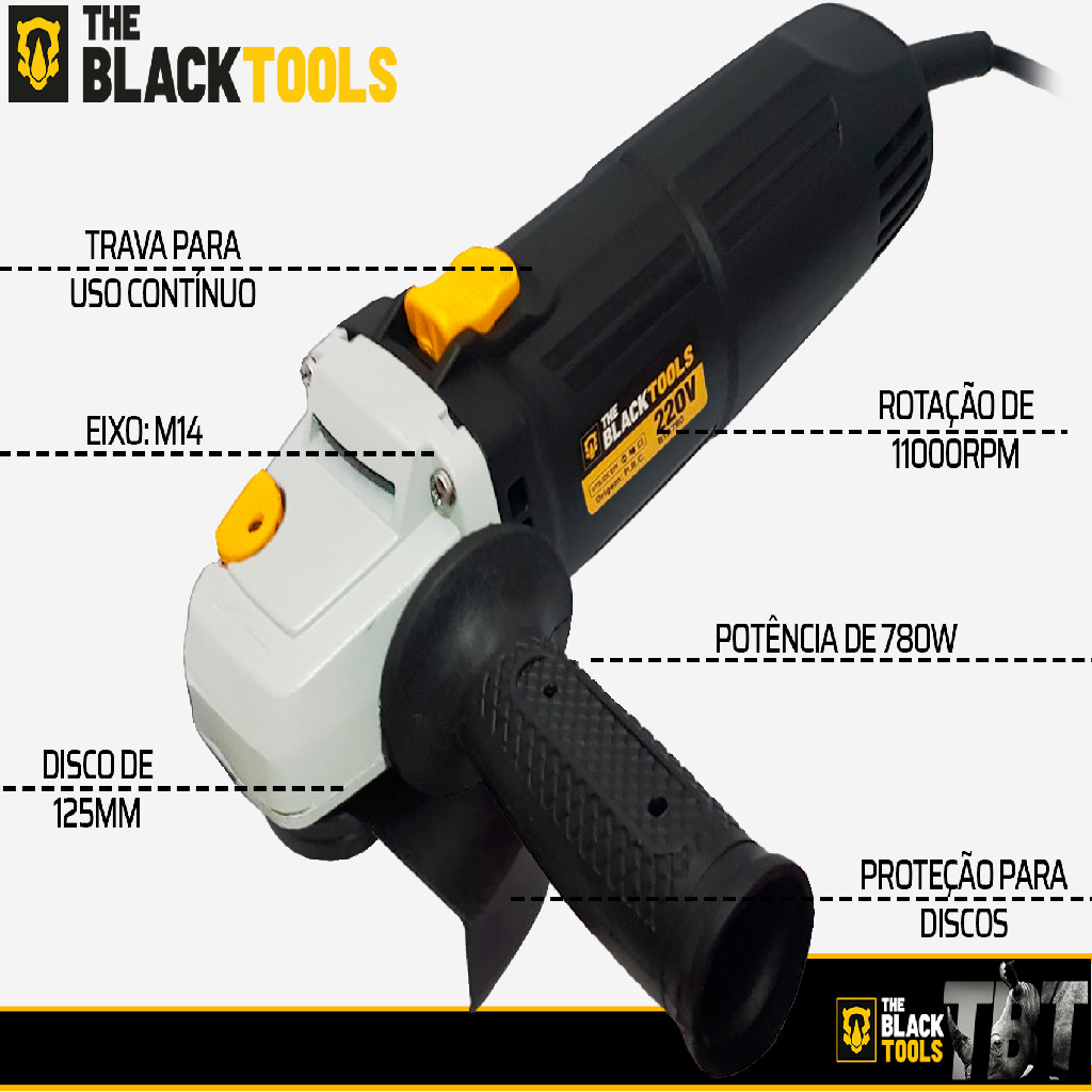 Esmerilhadeira Lixadeira Profi. 220v 4.1/2 750w The Black Tools + 10 Discos Corte Fino E Oculos