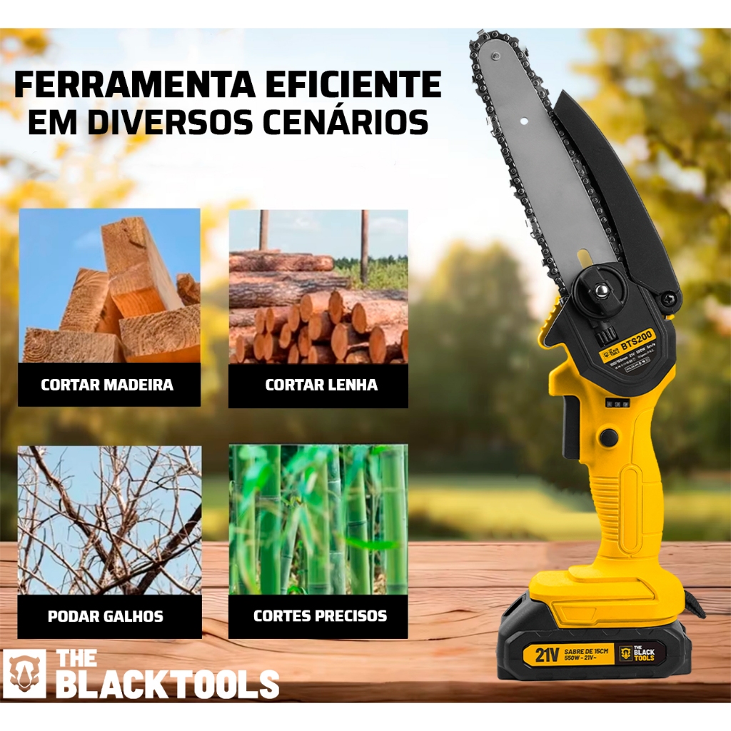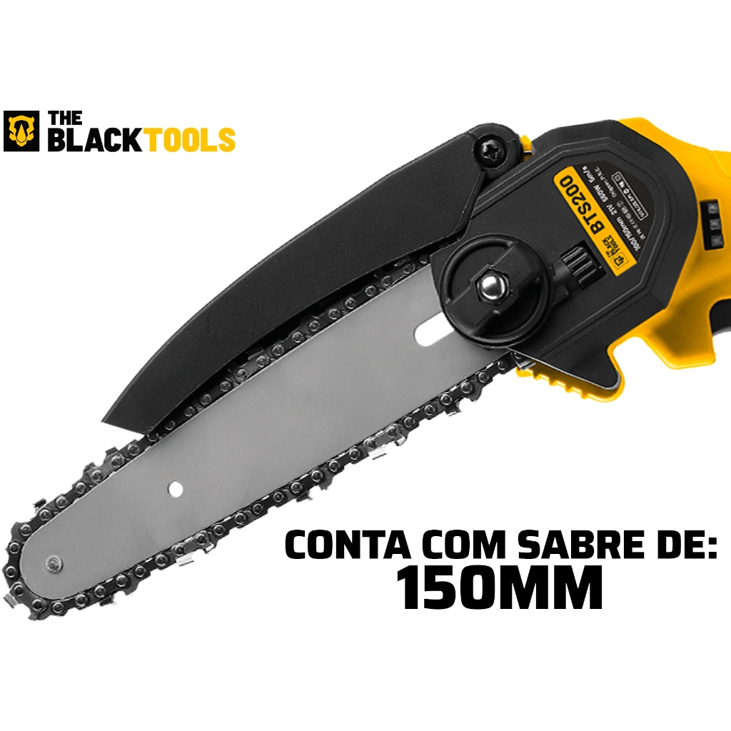 Motoserra Mini Serra Eletrica Potente A Bateria Bivolt 21v The Black Tools