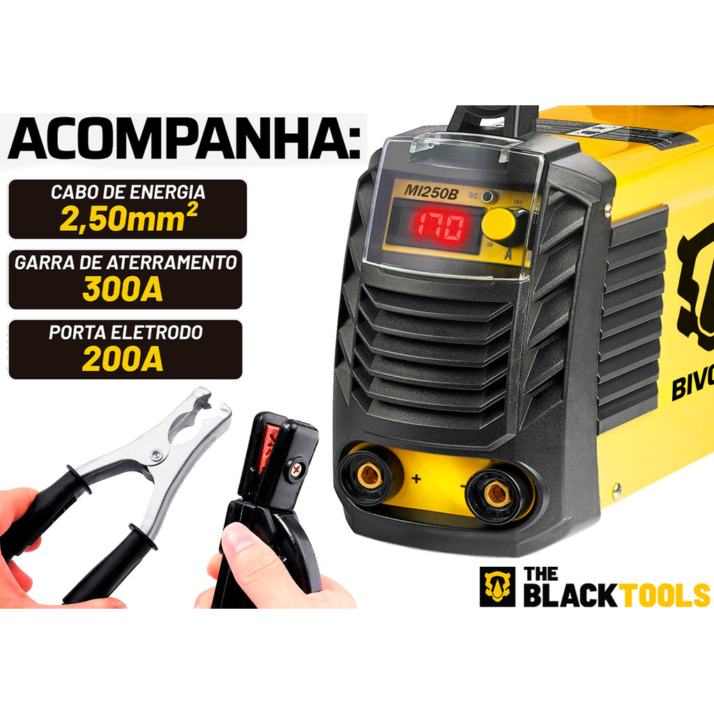 Maquina De Solda Eletrica Inversora Mma Tig Eletrodo 170a 220v Mi250a The Black Tools