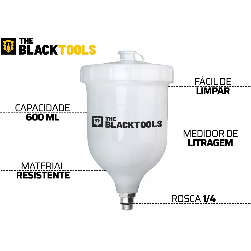 Kit 2 Unidades Copo Caneca Pistola De Pintura 600ml Cor Branco Btcc600 The Black Tools