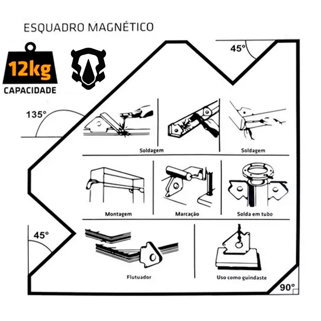 Esquadro Magnético Com Ima Para Solda Até 12kg 45 90 135 graus The Black Tools