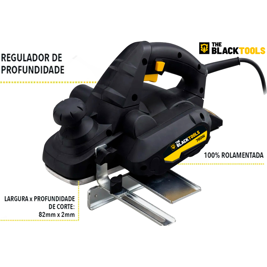 Plaina Elétrica Manual Profissional 780w 16500rpm 82mm The Black Tools Com Oculos