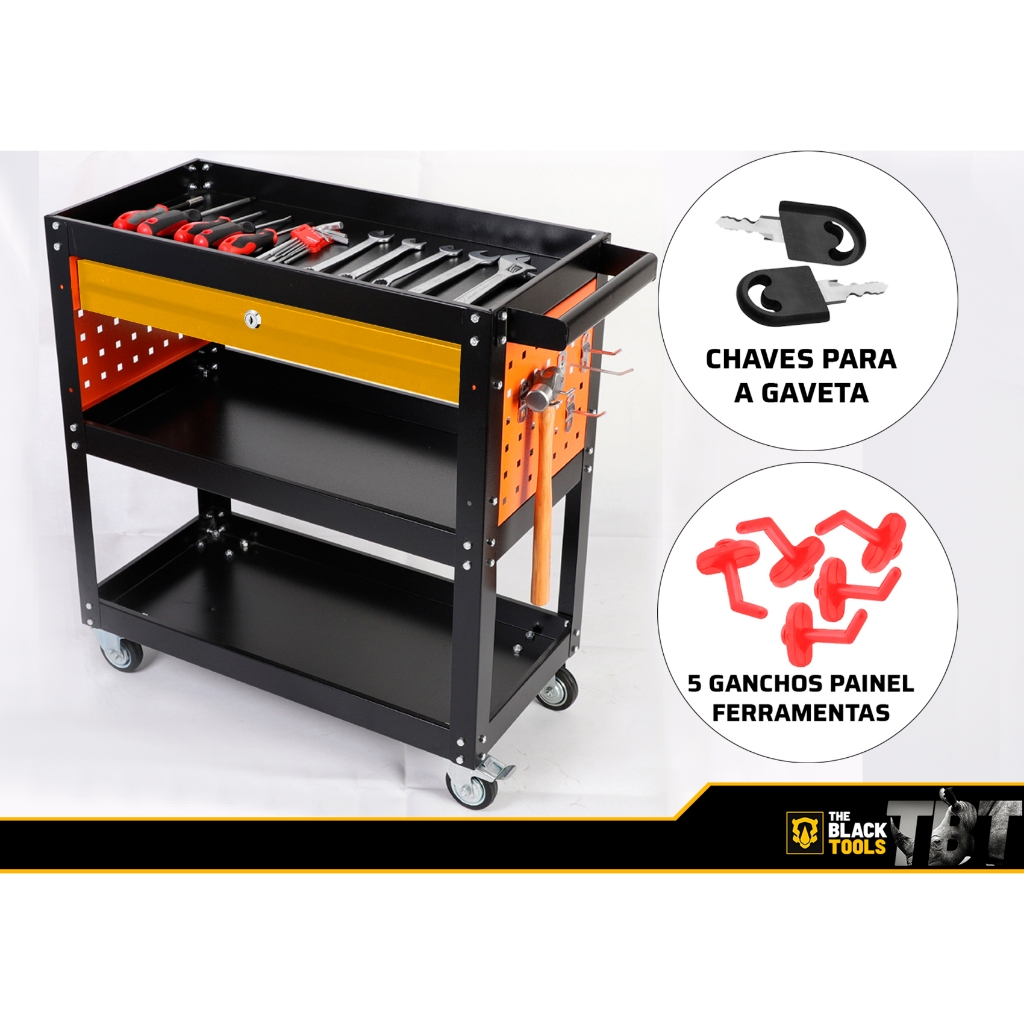 Carrinho Ferramentas Mecânico 1 Gaveta 120kg Organizador + Jogo Soquetes 40 Peças The Black Tools