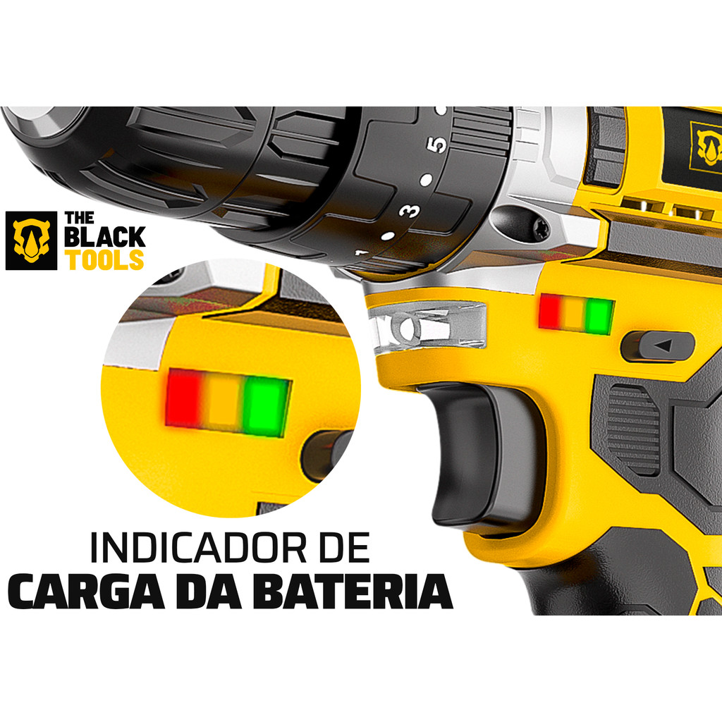Parafusadeira Furadeira Impacto Profissional 21v Com Kit Brocas E Buchas 300 Peças The Black Tools