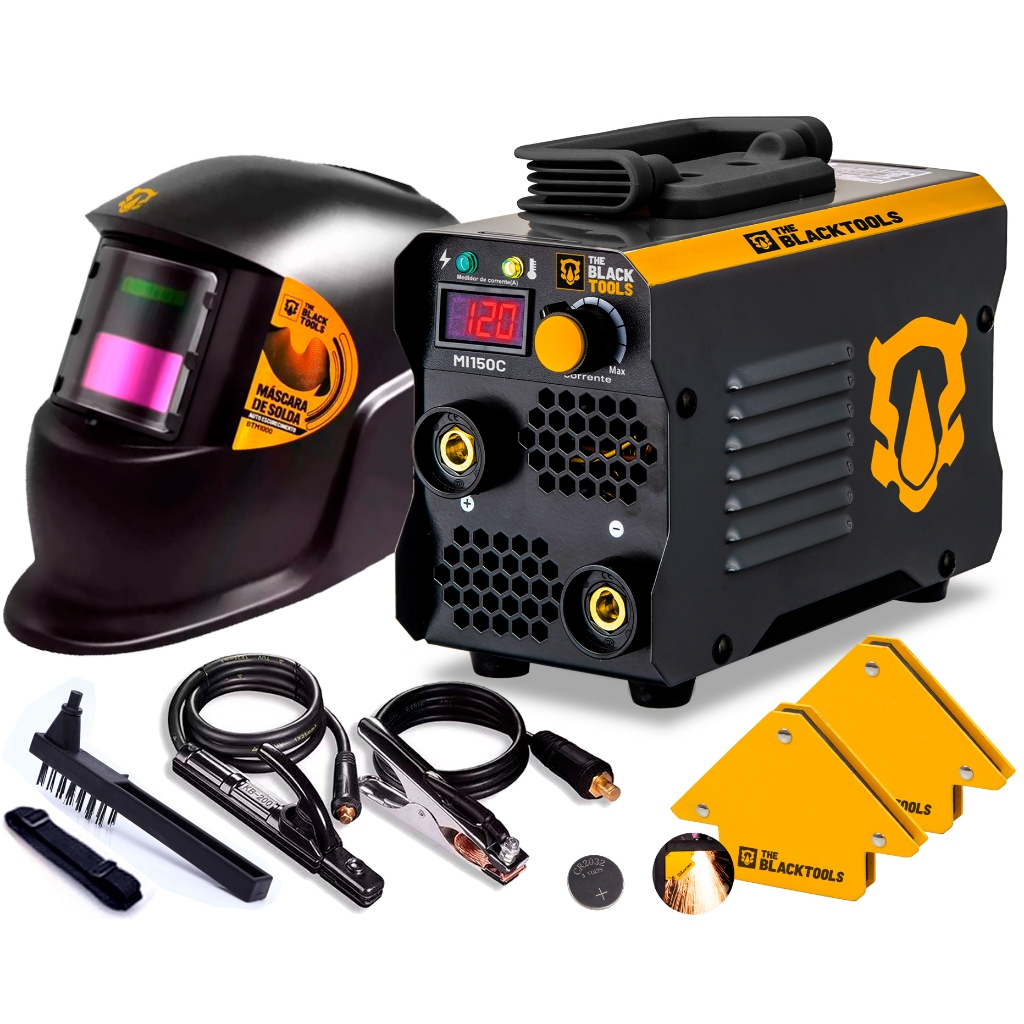 Máquina De Solda Eletrodo E Tig 120a Com Máscara Solda Automatica + 2 Esquadros Magneticos Com Ima