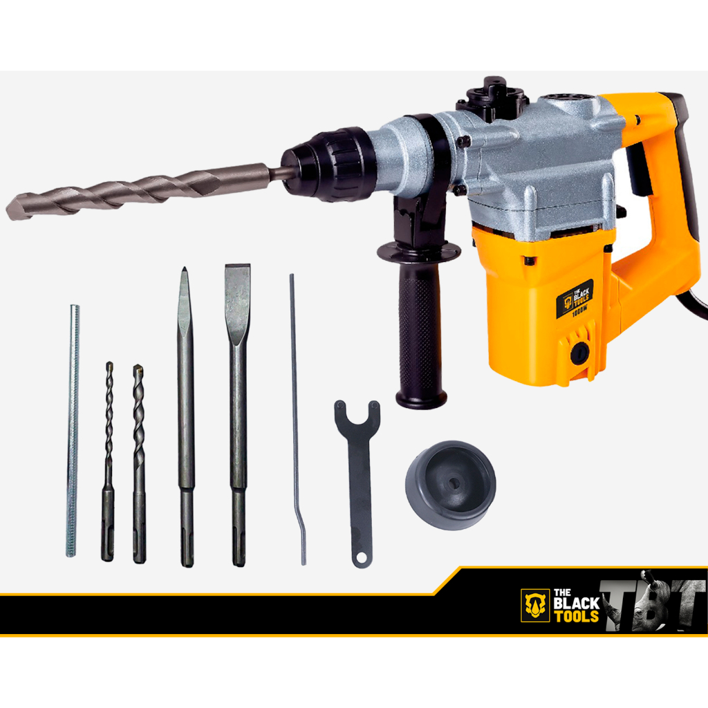 Kit Martelete Perfurador Rompedor Sds Plus Profissional The Black Tools Com Misturador Tinta Gesso