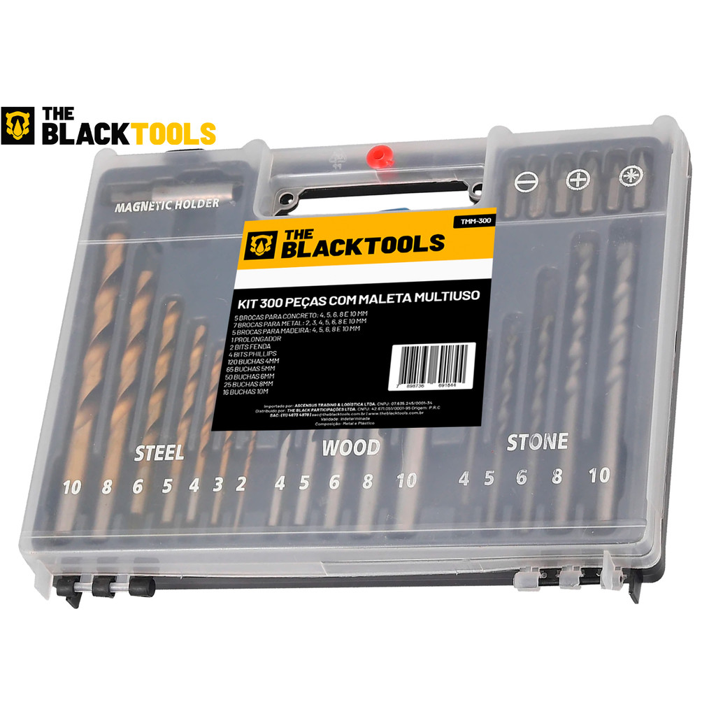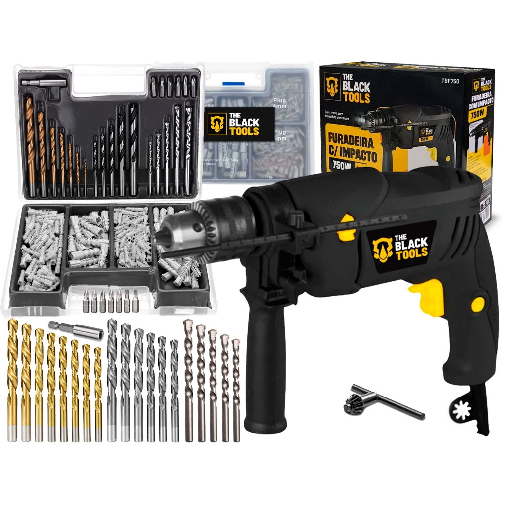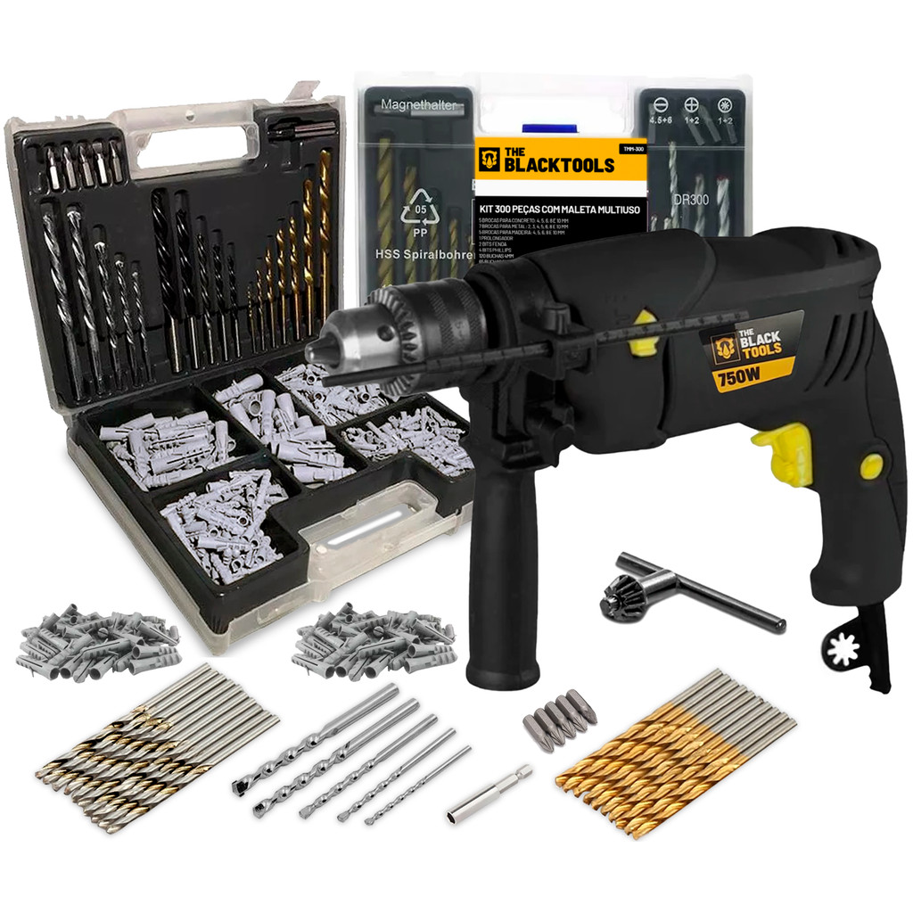 Furadeira De Impacto 1/2 Pol 750w The Black Tools + Kit Ferramentas 300 Peças