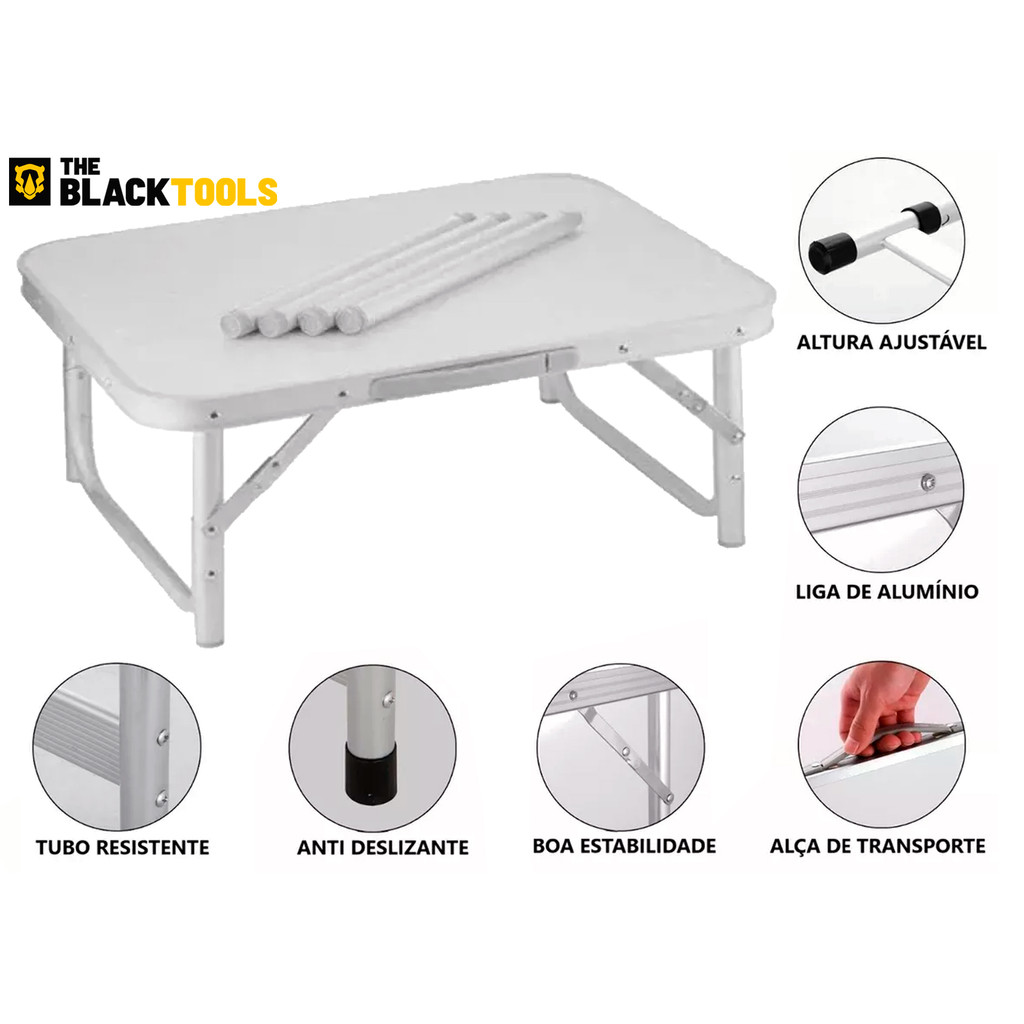 Mesa Pequena Dobrável Camping Alumínio 60x45cm Vira Maleta Cor Prateado