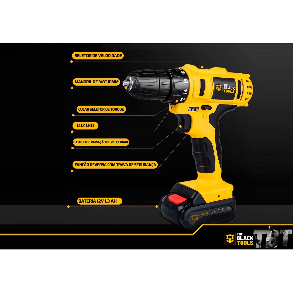 Furadeira Parafusadeira 12v C/ 14 Escovas Limpeza Box Sofá Cor Amarelo Frequência 50-60hz 127/220v