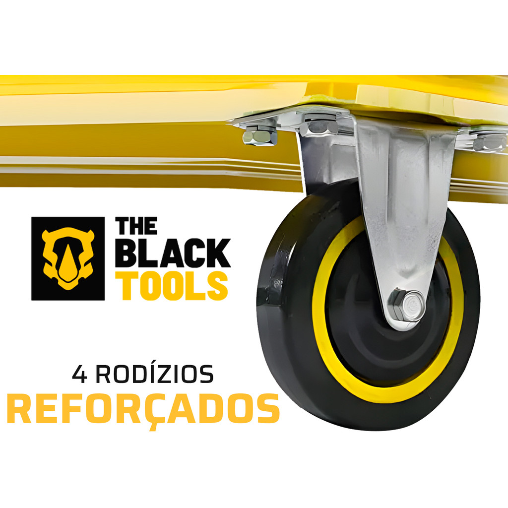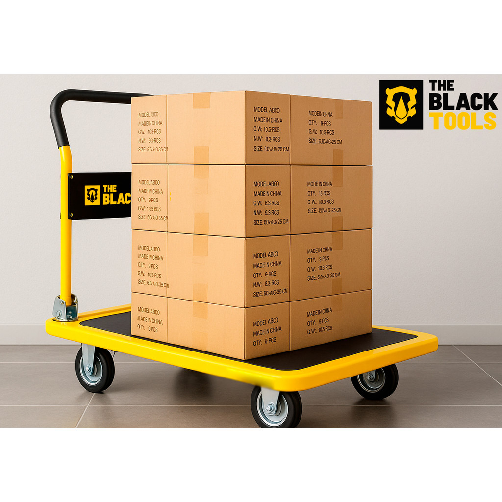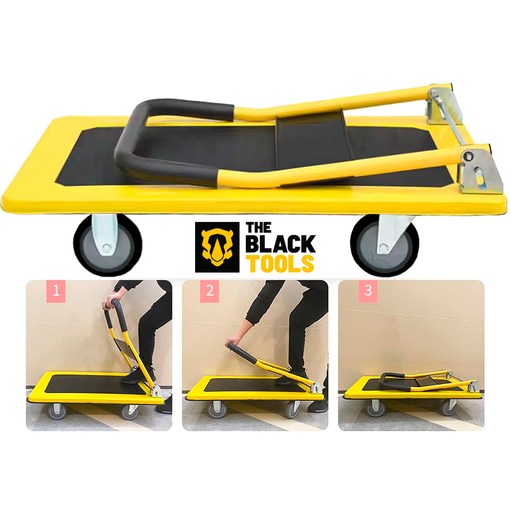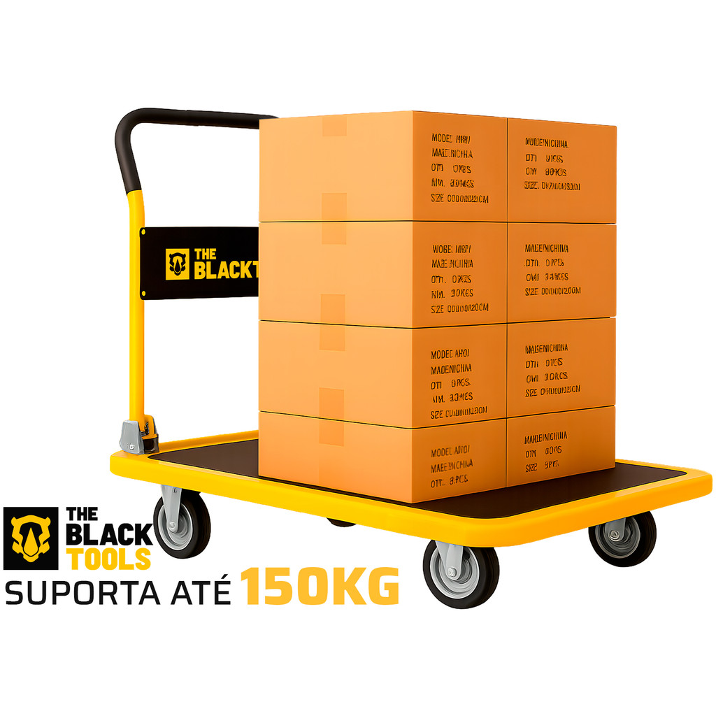 Carrinho De Carga Transporte Plataforma Multiuso Aba Dobrável Capacidade 150kg Aço The Black Tools
