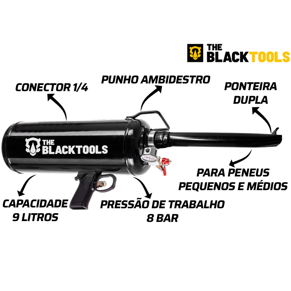 Assentador De Talão Bazooka Ar Para Pneu Sem Câmara 9 Litros Tat900 The Black Tools