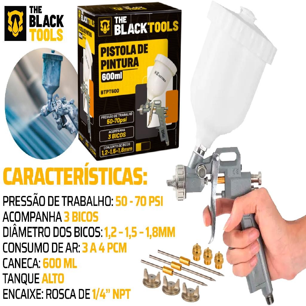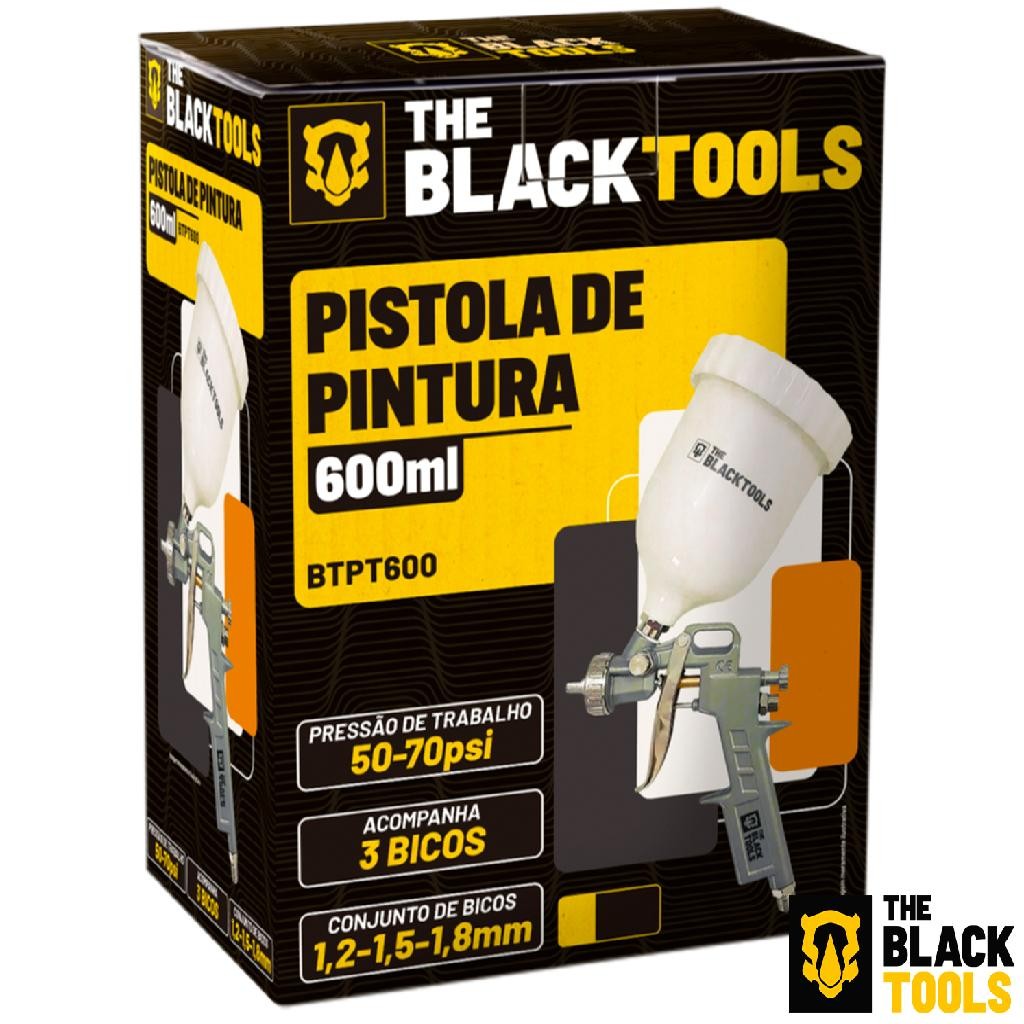 Pistola Pintura Gravidade 600ml 3 Bicos 1.2 1.5 1.8 Btpt600 Profissional The Black Tools