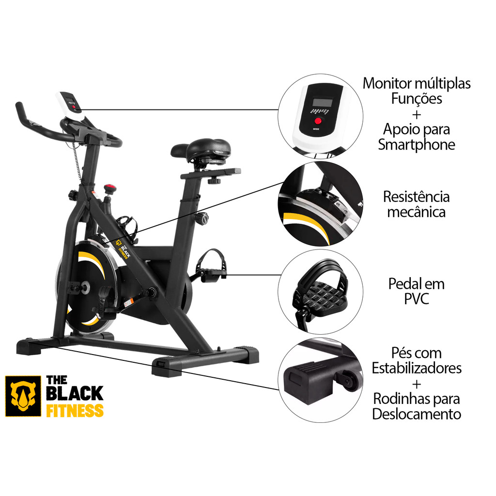 Bicicleta Ergométrica Spinning Mecanica 6kg Com Roda De Inércia Preto E Amarelo The Black Tools
