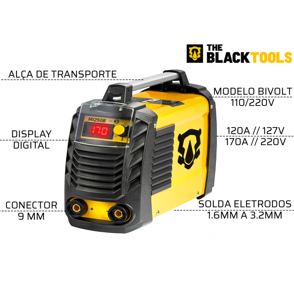 Maquina De Solda Eletrica Inversora Bivolt Mma Tig Eletrodo 127/220v 170a Mi250b The Black Tools