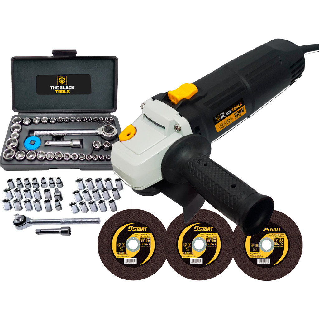 Kit Lixadeira Esmerilhadeira Profi. 4.1/2 The Black Tools + Jogo De Soquete 40 Peças
