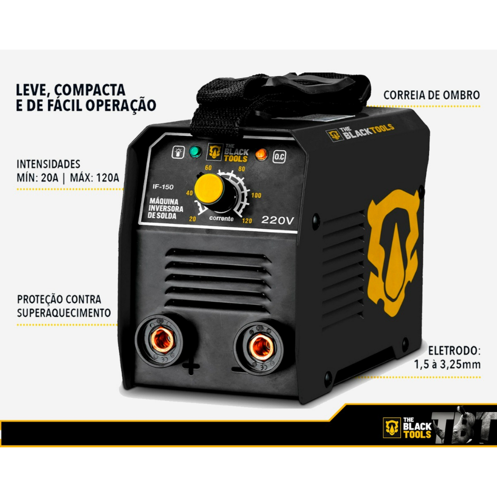 Máquina Solda Inversora Elétrica Compacta Portátil MMA TIG Eletrodo 120A The Black Tools 220V 60Hz