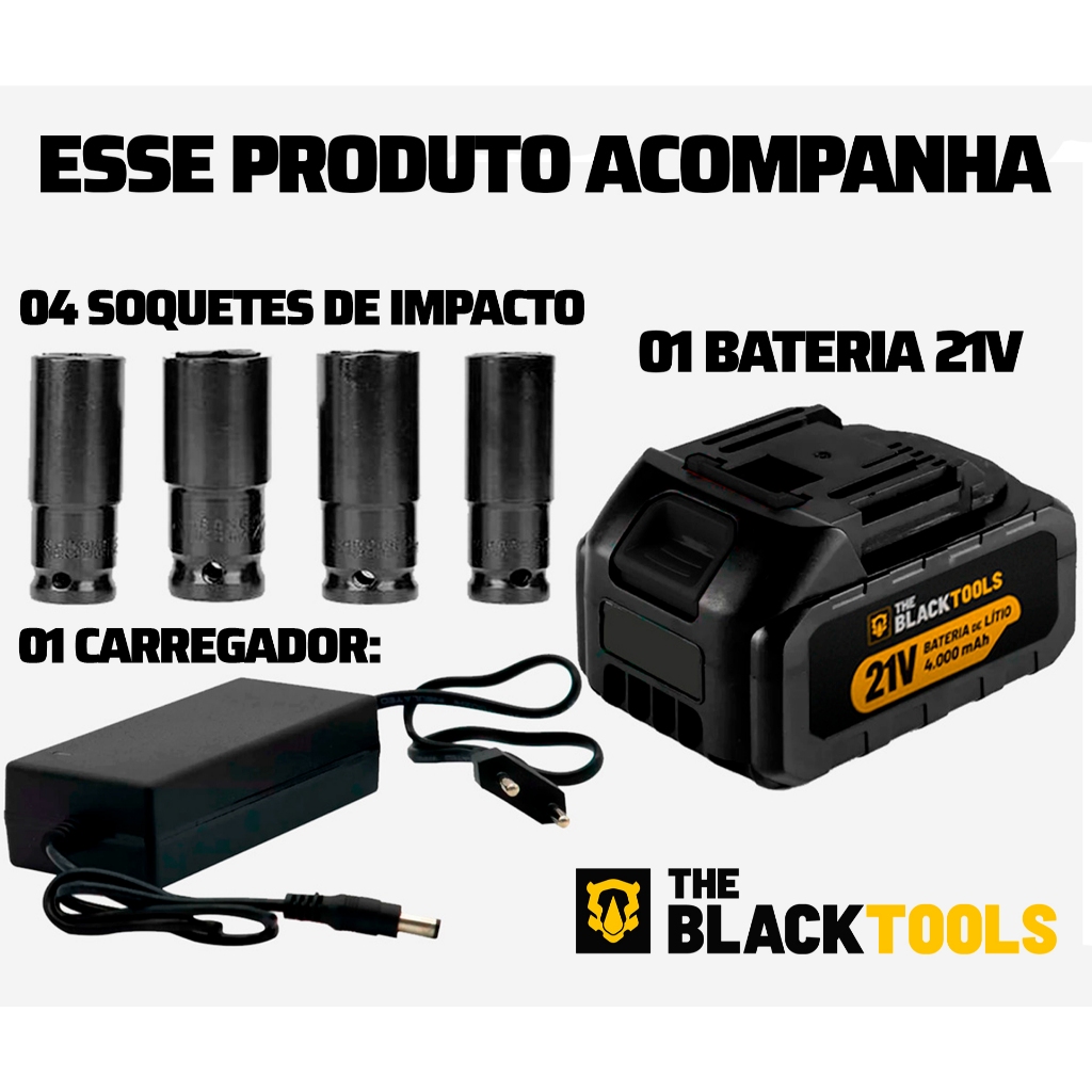 Chave De Impacto Profissional Motor Brushless 430Nm A Bateria 21v Bivolt Tb-21i The Black Tools