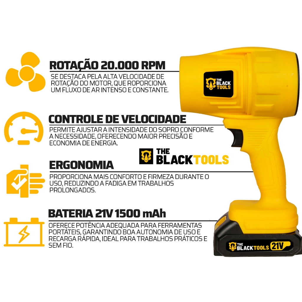 Soprador De Folhas Turbo Portátil Sem fio Recarregável 2000w Ergonômico Com Bateria 21v Amarelo