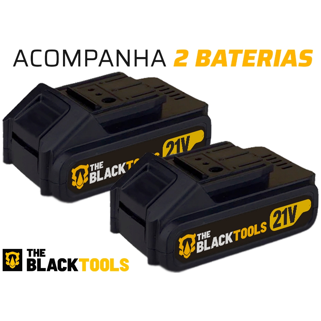 Parafusadeira E Furadeira Impacto The Black Tools 2 Baterias 21v 3/8 Com Jogo De Brocas 300 Peças
