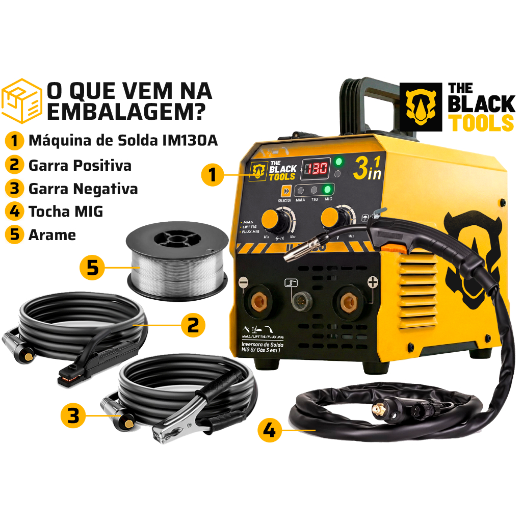 Máquina Inversora Mig 130a Sem Gás 3 Em 1 Tig Lift Mma Eletrodo Ilm130 220V Mig The Black Tools