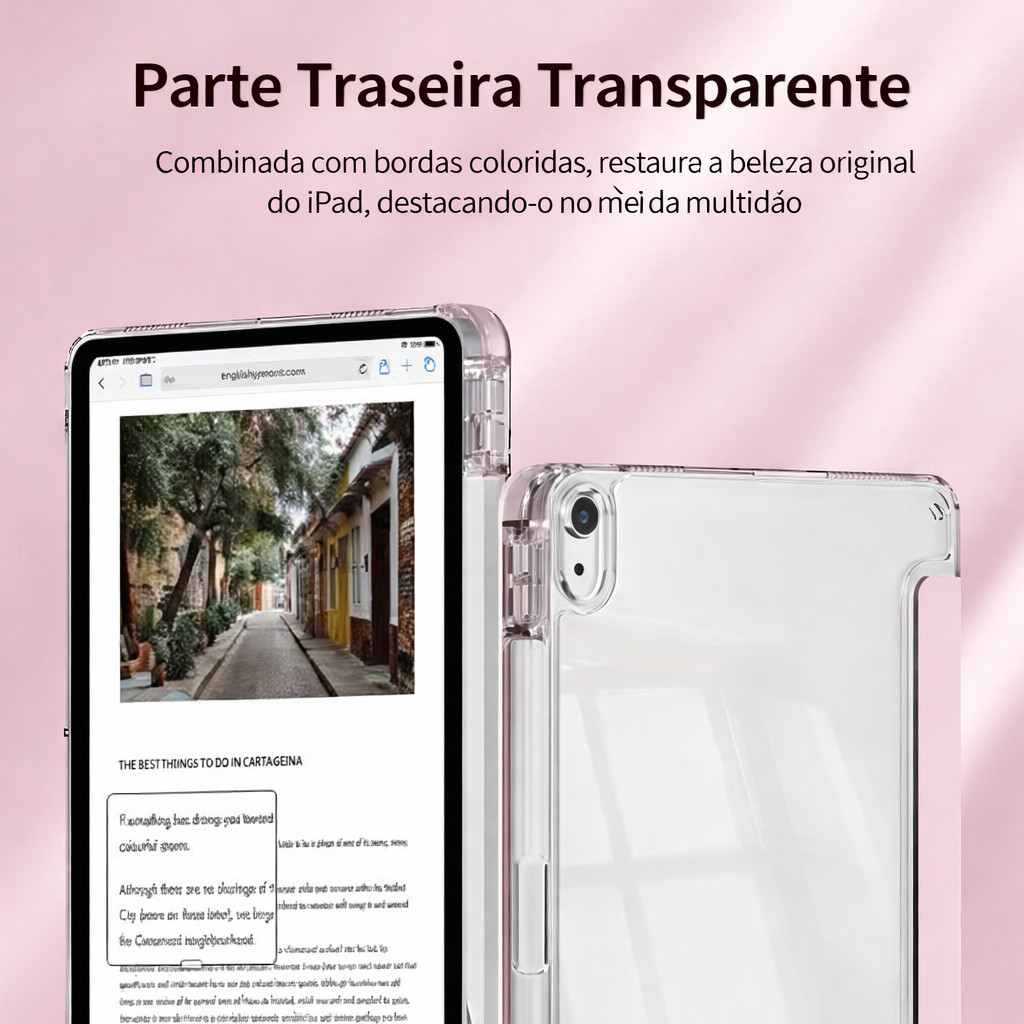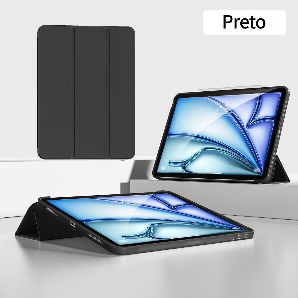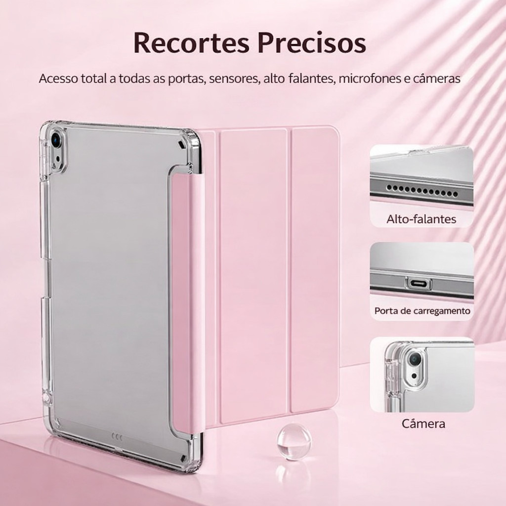 Capa Transparente Proteção Para ipad 7/8/9/10/11(A16)/Pro 11" , Air 4/5/M2/ M3 com suporte para caneta