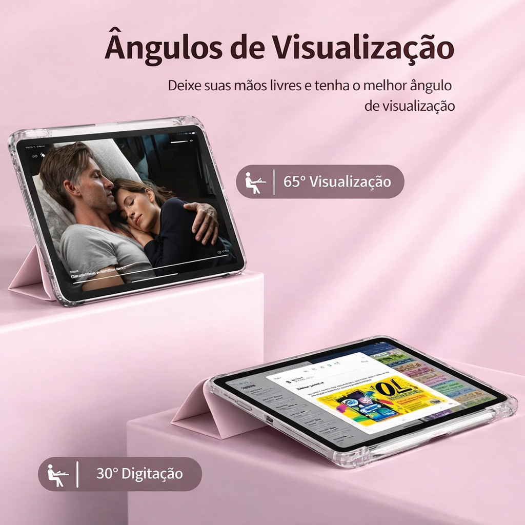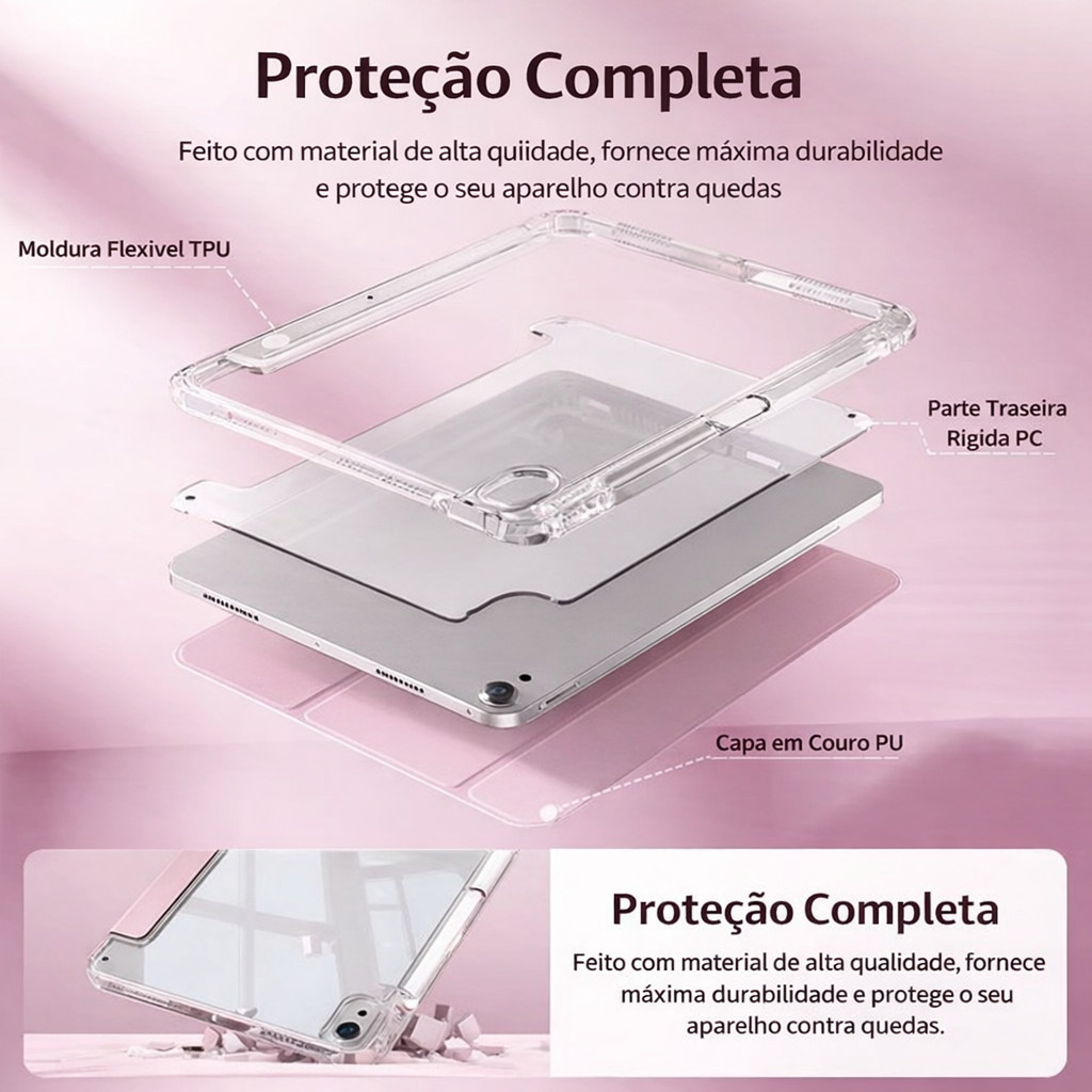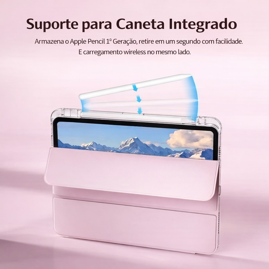 Capa Transparente Proteção Para ipad 7/8/9/10/11(A16)/Pro 11" , Air 4/5/M2/ M3 com suporte para caneta