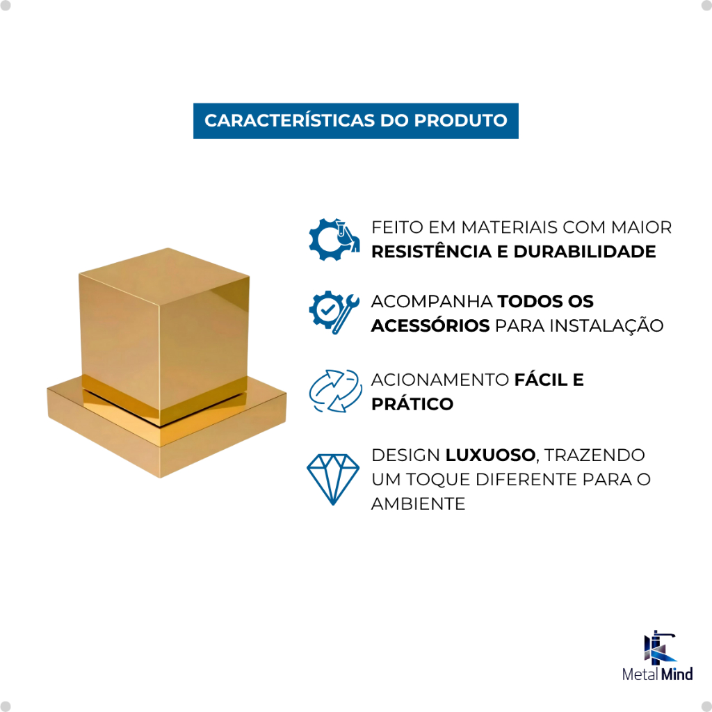 4 Acabamentos para Registro Dourado Quadrado em Metal –Design Moderno e Alta Qualidade (1/2, 3/4, 1)
