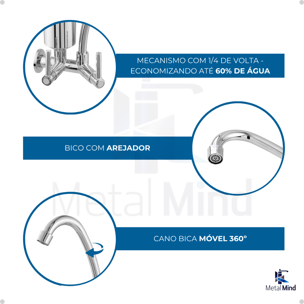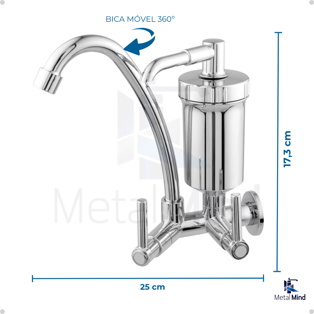 Torneira ABS Cozinha Parede Bica Alta Com Filtro Pro Saude Cromada