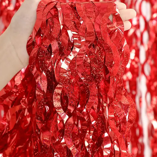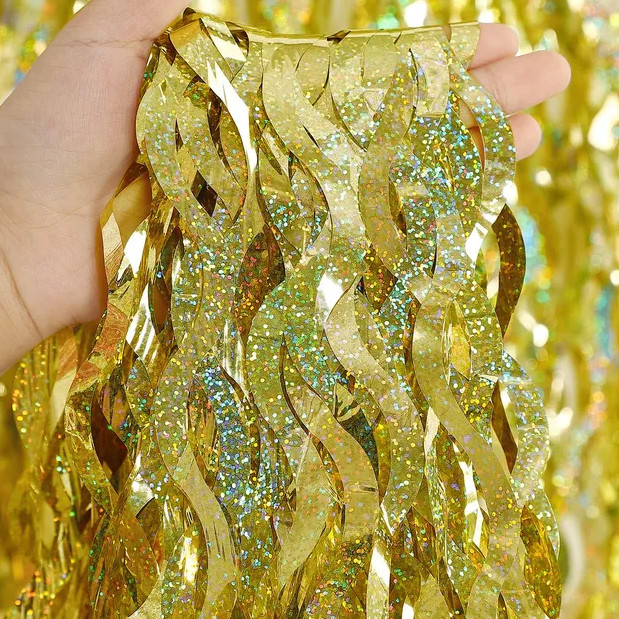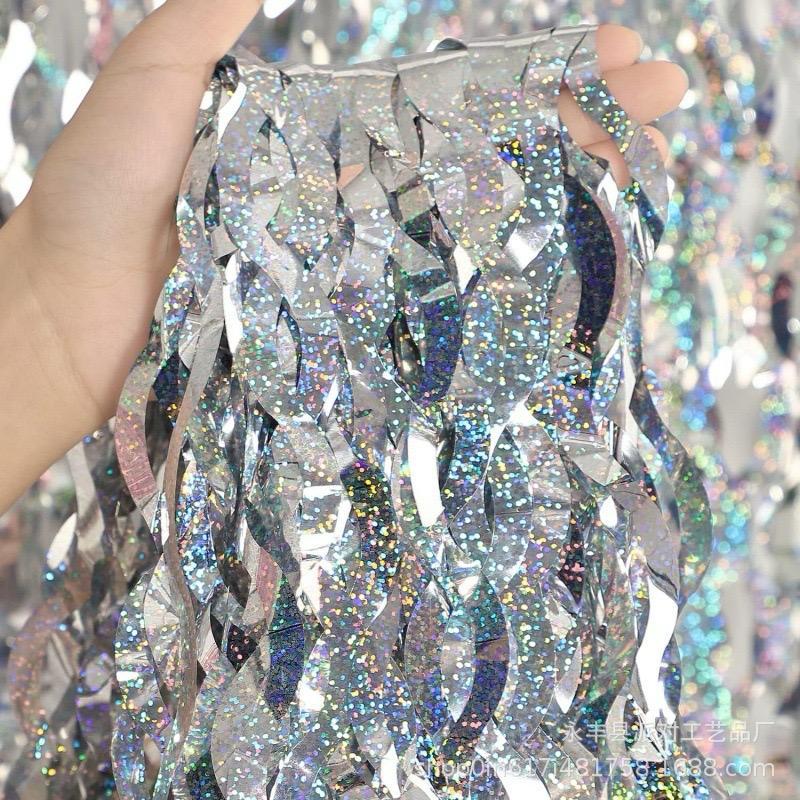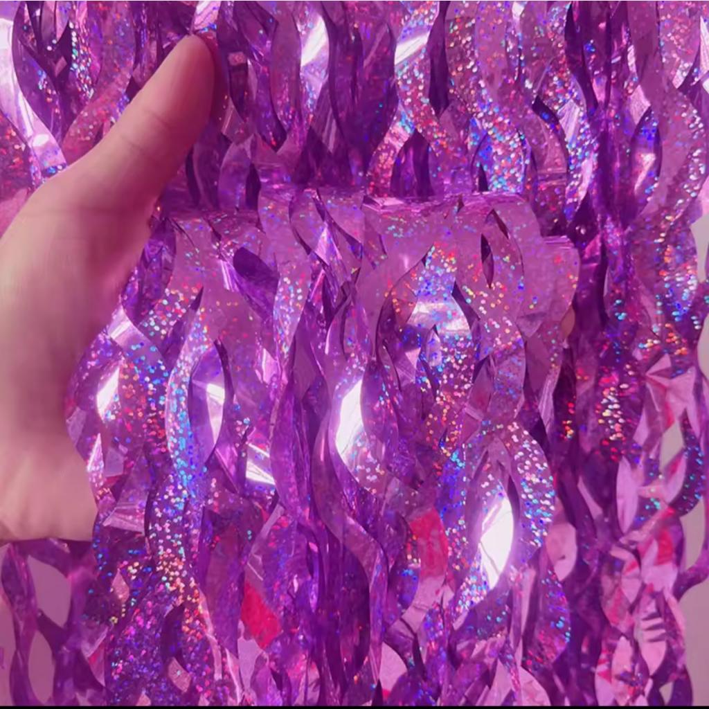 Cortina Ondulada e Holografica metalizada para festa Franja 2M*1M painel decoração festa enfeite