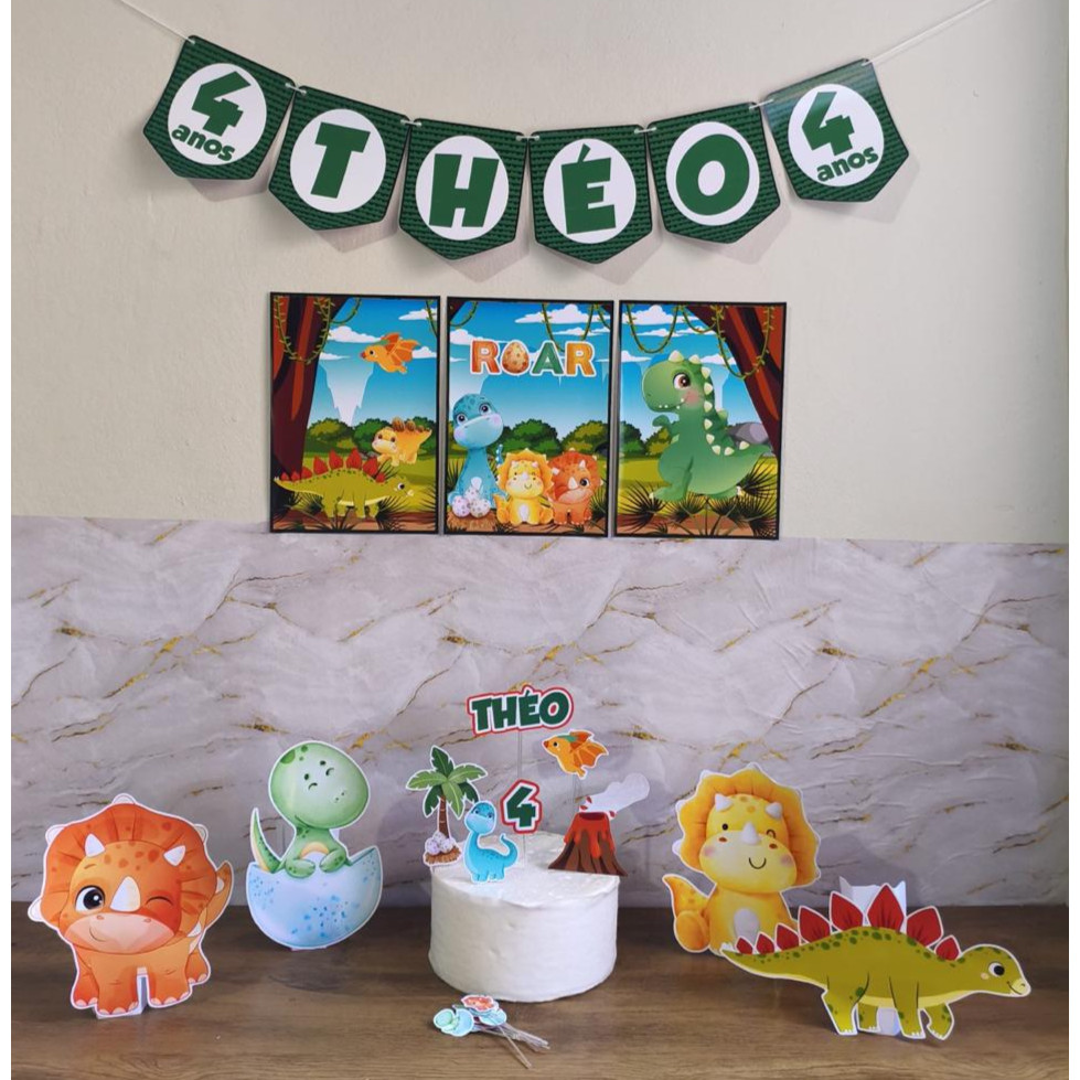 Kit Festa Dinossauro Dino Baby, Decoração de Aniversário ou Mesversário, Personalizado