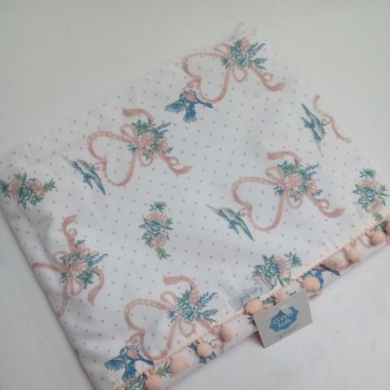 Manta Doce Aconchego – Tricoline com pompom (75x85cm)