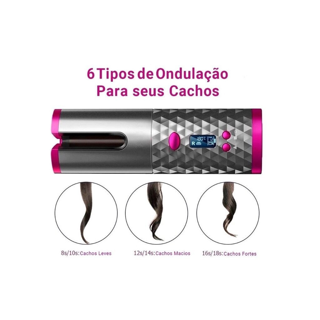 Modelador de cabelo automático sem fio com bateria recarregável de cerâmica embutida atlas