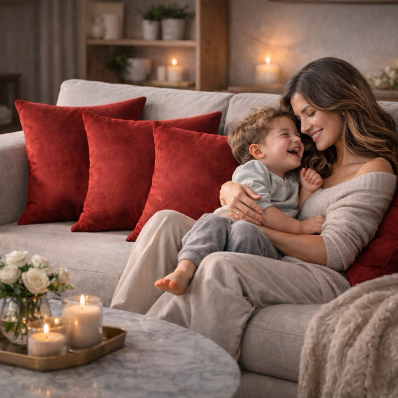 Kit 4 Capas De Almofada Macia Decorativas Suede Lisa 45x45 Vermelho Lisa