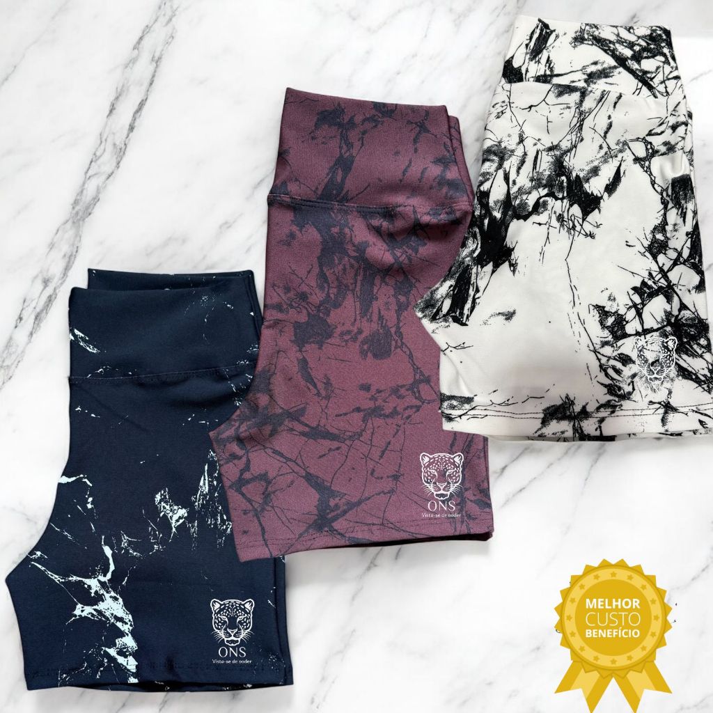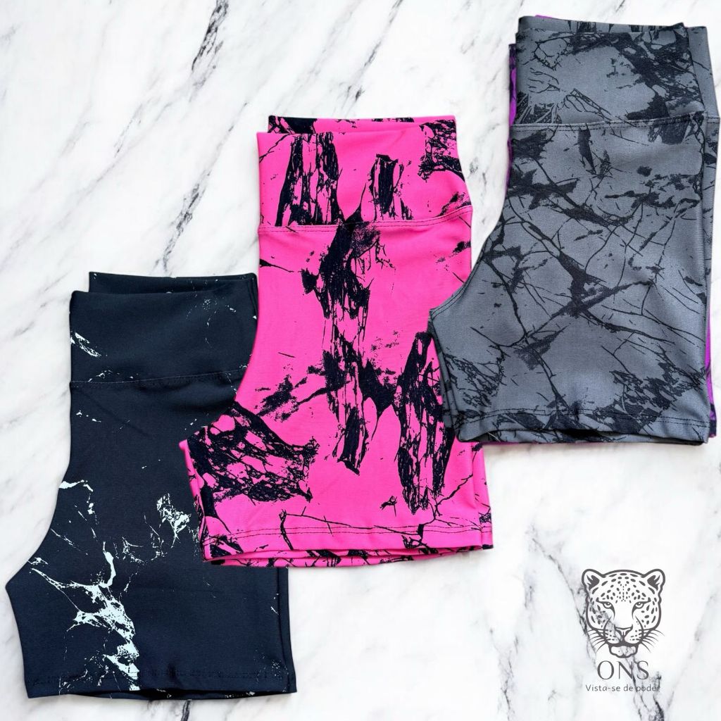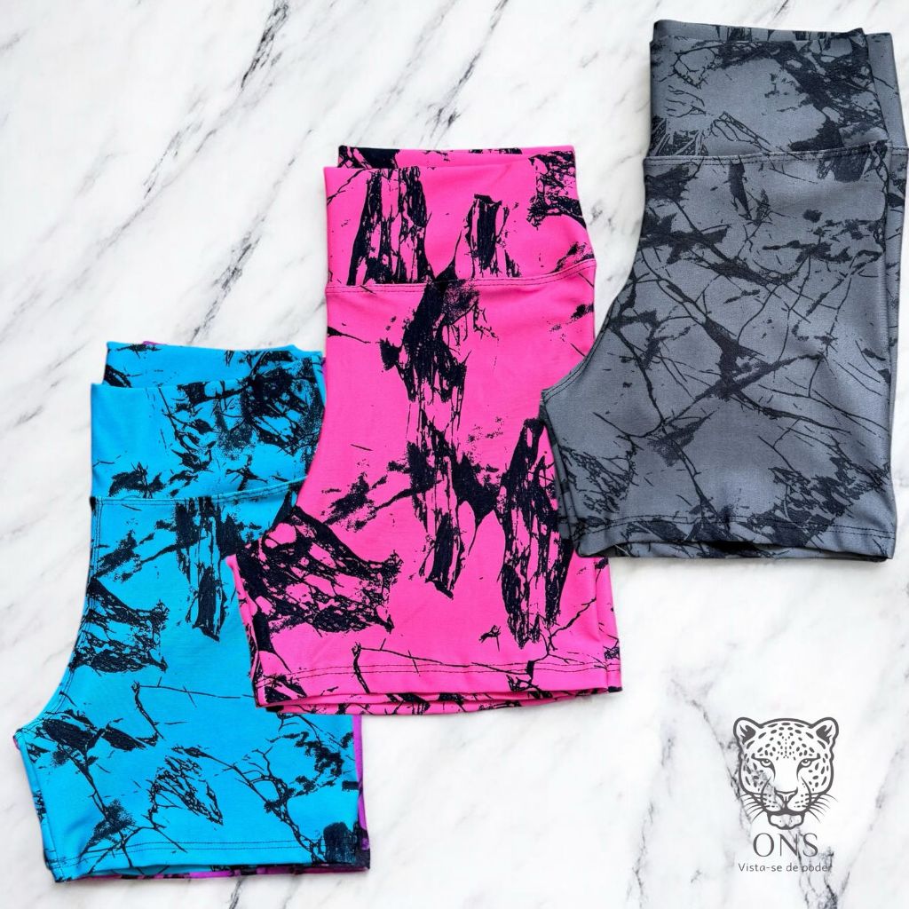 Kit 3 Shorts Marmorizado Roupa Fitness Cintura Alta Feminino Tie Dye Zero Transparencia Academia